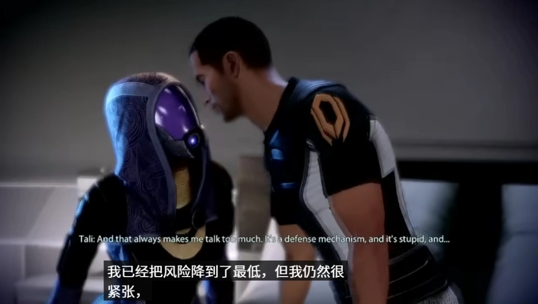 那么,当我了解这些“危险”情况,又得知队友里有同样“反螺旋”的外星人,且还对塔莉有好感,那是否应该继续这段感情?你看,这游戏已经让我学会用脑袋代替“下半身”思考了,这恰恰说明编剧写的是服务于叙事的好“床戏”。