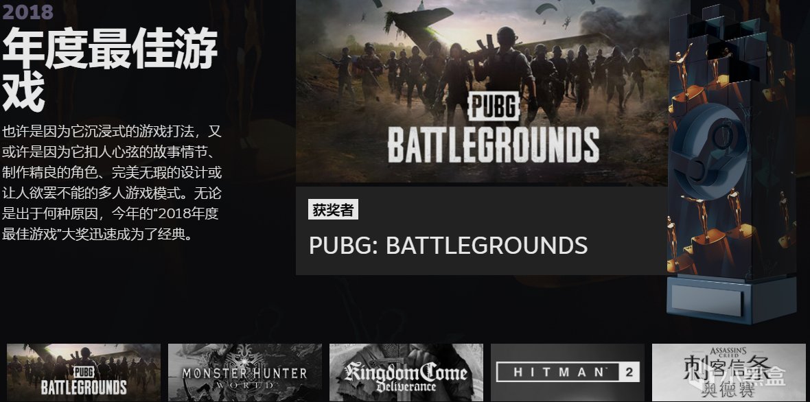 从2018年开始,Steam大奖设立了年度最佳游戏奖项。