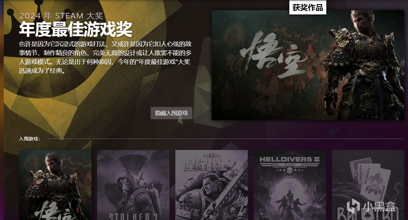 Steam大奖(Steam Awards)于2016年创立,获奖游戏由Steam用户投票选出。