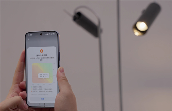 說白了,它能掃描你周圍的燈光,不管是辦公室的熒光燈、家裏的 LED 燈,只要有頻閃問題它都能檢測出來,也就是說,手機不光管自己護眼,連你家的燈護不護眼它都要管。。。