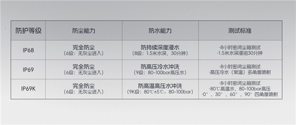 另外在防護性上,榮耀這次也拉滿了,直接給這兩臺手機上了 IP68、IP69、IP69K 這套防水全家桶,從日常潑濺到高溫高壓水槍沖洗,基本把你可能遇到的涉水場景,全考慮進去了。