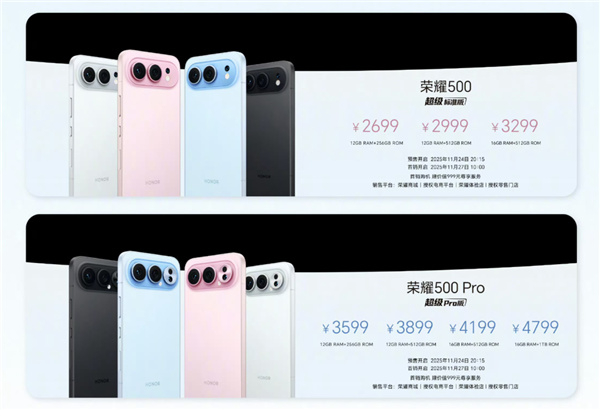 左:榮耀 500標準版;右:榮耀 500 Pro 版