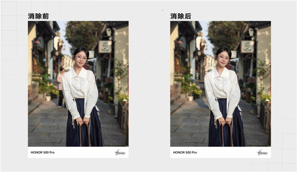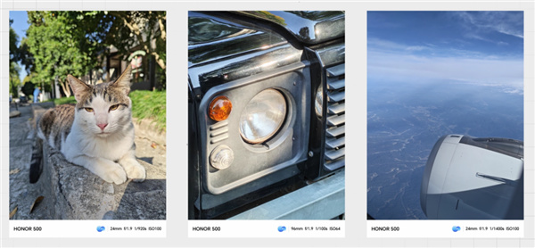 榮耀 500 標準版依舊是主攝+超廣角的經典組合,而 Pro 版則通過一顆直立長焦跟標準版拉開了差距 ——換句話說,想玩長焦?得加錢!但你要說它們的影像拉了,那倒未必。