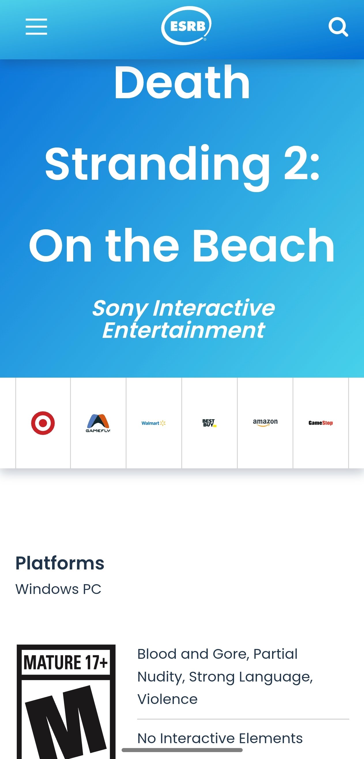 《死亡搁浅2:冥滩之上》PC版已获得ESRB评级,或将在年末发售!