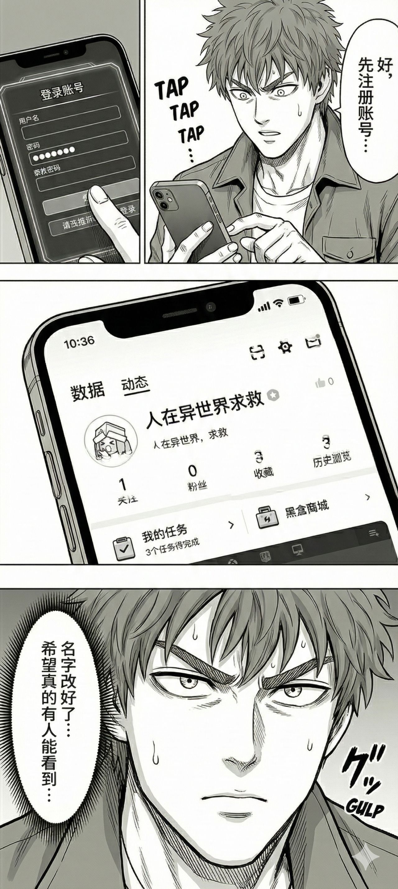 我们的主角在这里,他会不定期更新帖子:@人在异世界求救救