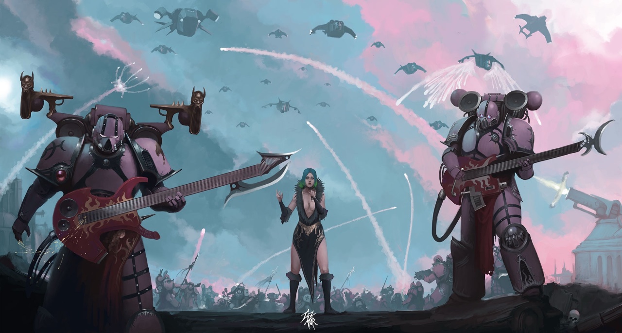在設定與桌面遊戲中,噪音陸戰隊也是帝皇之子軍力的核心之一,是“用音樂殺人的瘋子戰團”的典型形象。
