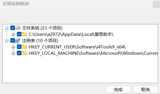 刪除後,還會再幫你掃描一次,發現殘留痕跡,點【完成】,自動幫你清除