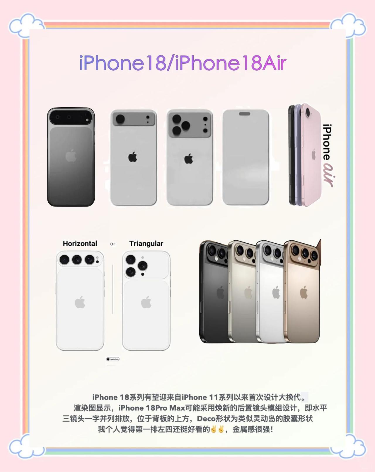 性能方面,iPhone 18全系将搭载基于2nm工艺的A20系列芯片,并首次标配苹果自研基带C2,预计能效与连接性能将获显著提升。值得关注的是,标准版iPhone 18内存有望升级至12GB,Pro Max版本则将采用更耐用的钢壳电池,续航能力或进一步增强,但机身重量可能增至约240克。