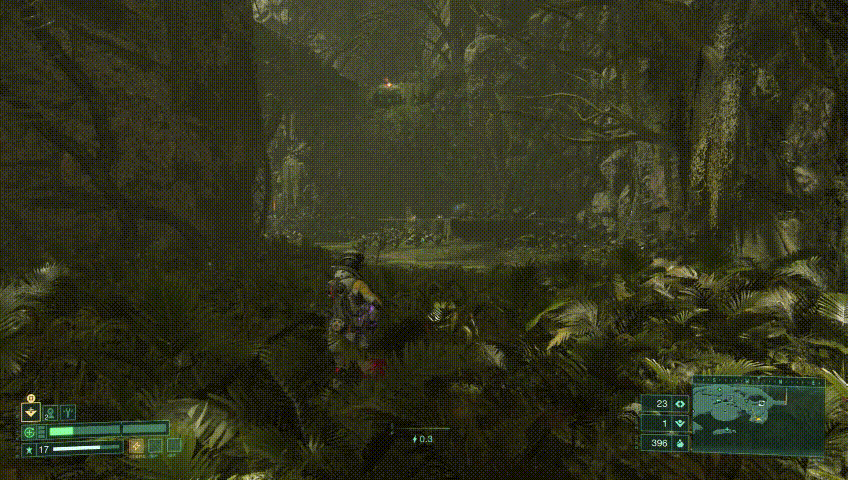 除了标注的各种资源外,地图上还存在着一些看不到的资源,像是一些可破坏物破坏之后有概率掉落大量的欧珀莱货币,拿这些货币的风险要远远小于贴身击杀敌人。同时地图上分布的外星紫花在破坏之后还有概率掉落寄生生物,带来一个buff的同时赋予debuff,部分寄生生物的debuff甚至可以认定为buff。