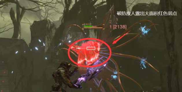 敌人在破防后会大面积露出自身的弱点,在游戏中以红色高亮显示,玩家可以在敌人破防后瞄准敌人的弱点进行输出,达到事半功倍的效果,同时一些敌人头部等弱点即便是没有破防时也享受伤害加成。