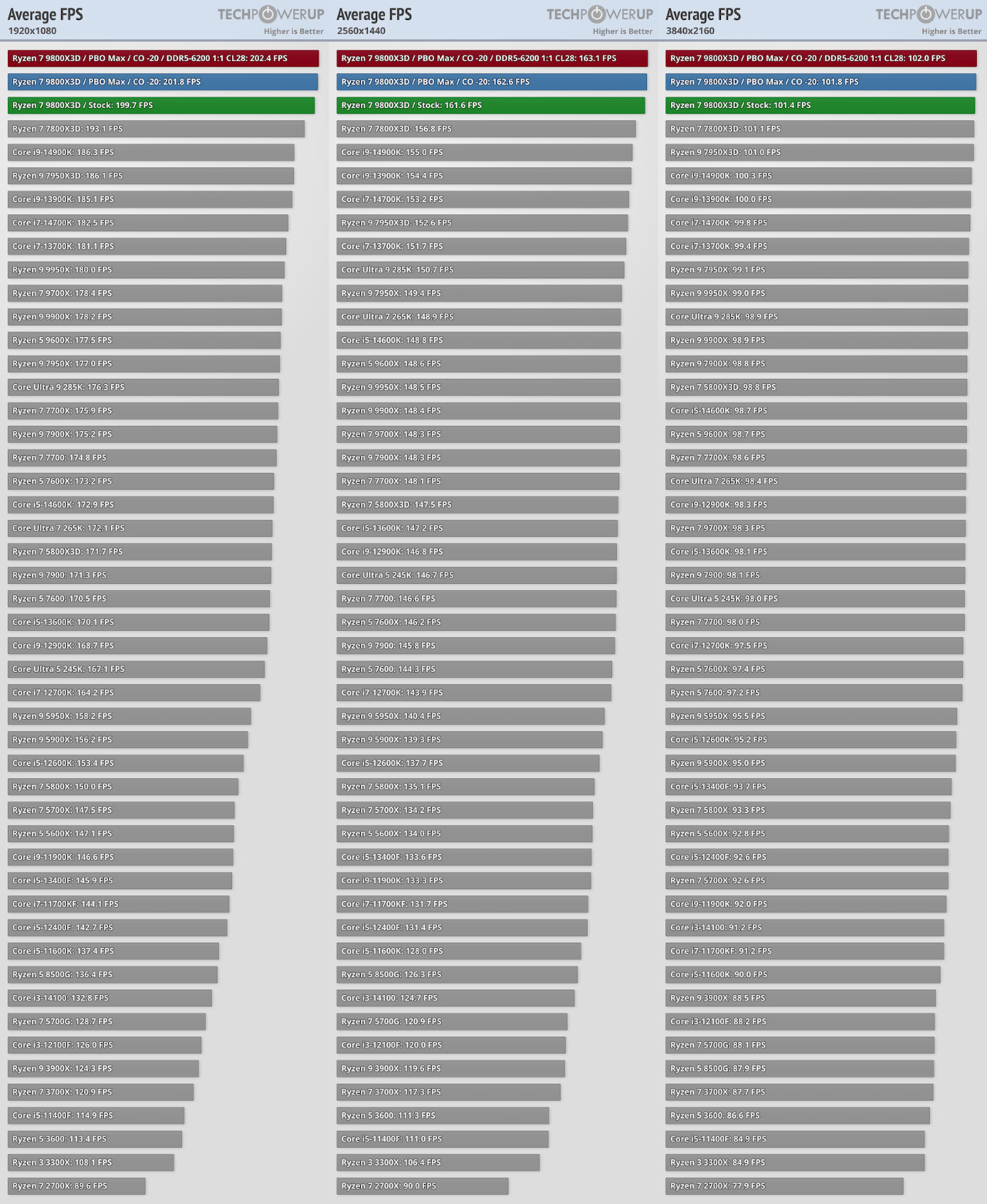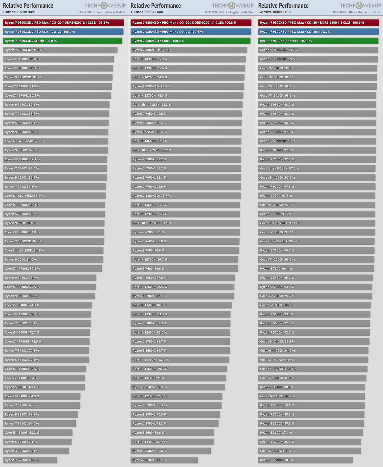 CPU游戏表现对比(9800X3D基准)