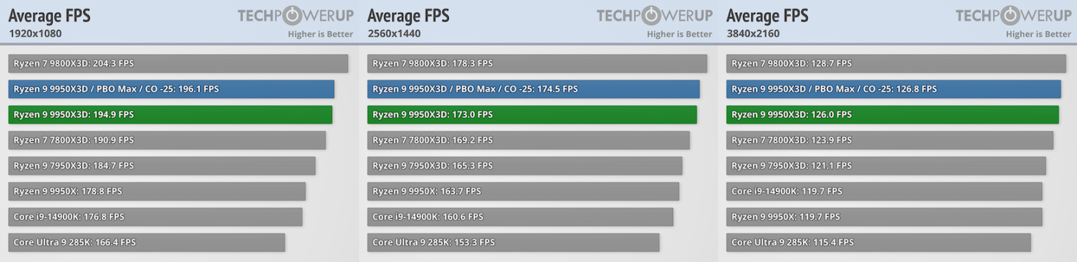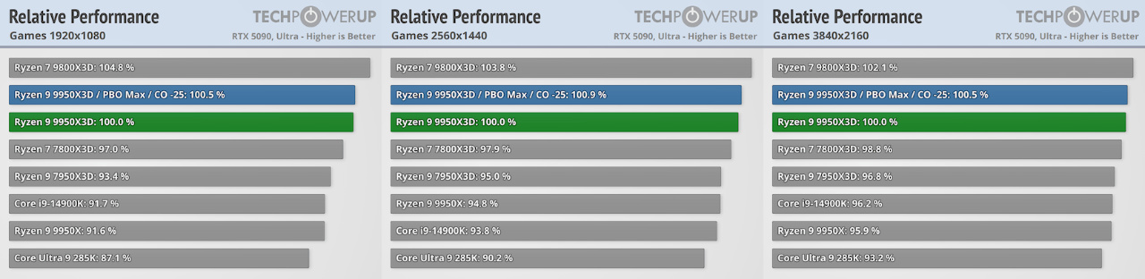 CPU游戏表现对比(9950X3D基准)