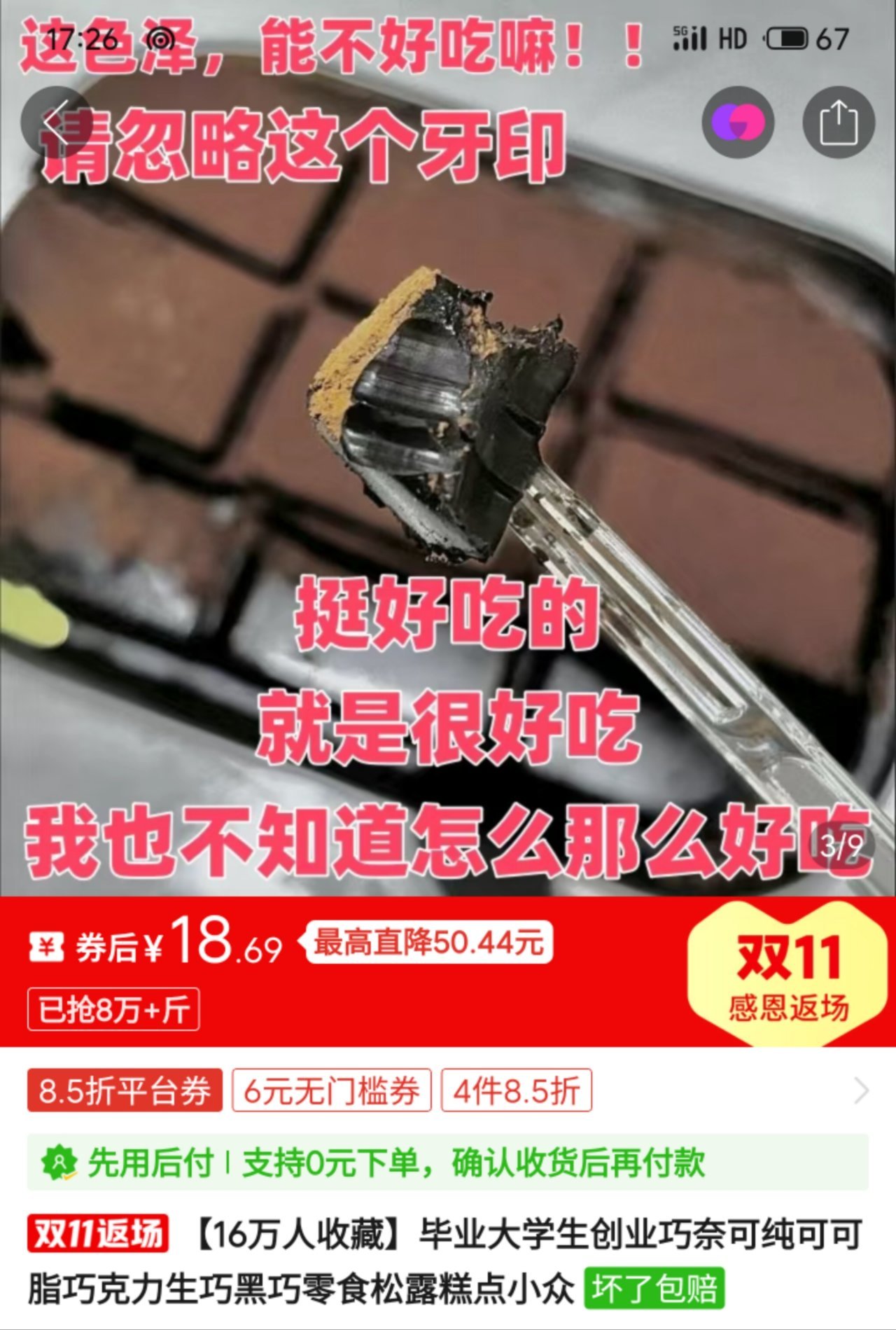 这个想必不用多说,大家应该都吃过吧蛋糕上面是一层薄薄的白巧涂层,嚼起来干干脆脆的,很有满足感。在嘴里细细品味之后是蛋糕的香气,吃起来巨上瘾无比价格还是比较合适的,好吃!!!