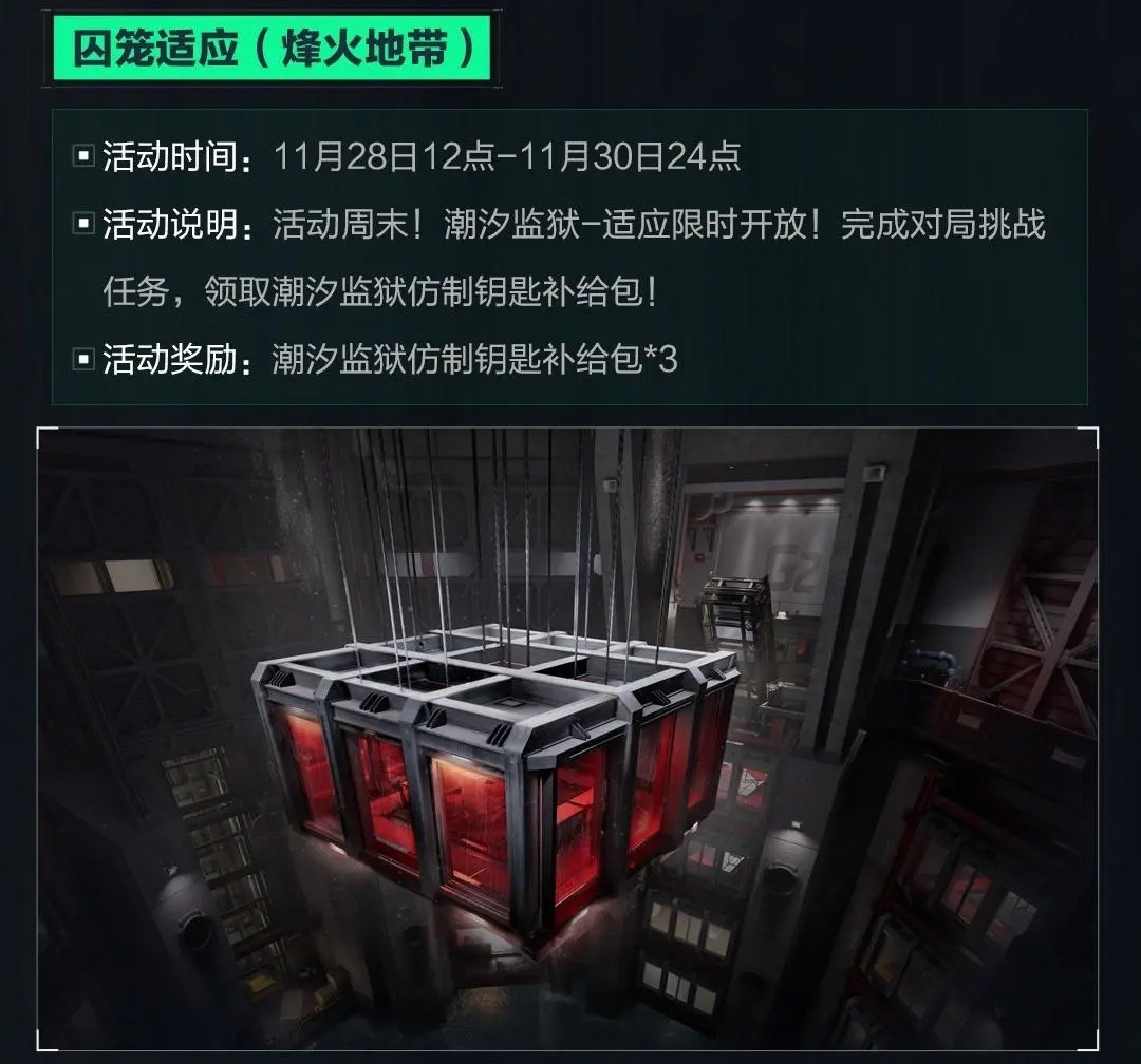 监狱适应性活动将于11月28日12点至11月30日开启(即这周周末)会给监狱的仿制钥匙包!