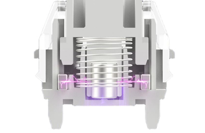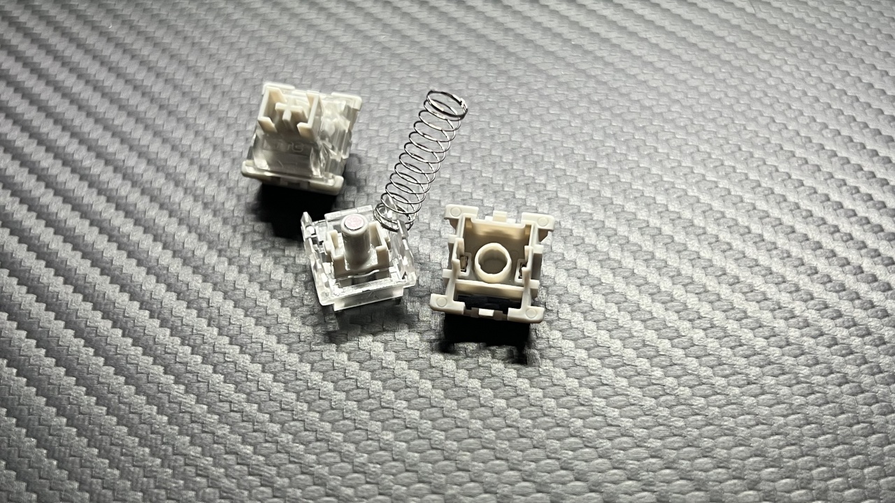零35的研发团队在轴体底部两侧加了两块同极相对的永磁铁:当轴芯被按下时,轴芯上的磁铁会靠近轴体底部的磁铁——同极磁铁会产生排斥力,这个排斥力会随着磁铁间距缩小(轴体按下深度增加)而增大(磁力随距离减小而急剧增强),而且它会抵消掉部分按压弹簧的外力,最终让轴体的整个按压过程无压力差,实现了零35的“平滑力曲线”。