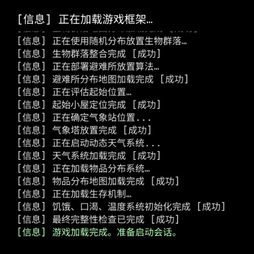 在刚开始游戏时,画面左边会跳出一个类似“饥荒”游戏那样的世界生成状态栏,为玩家生动的介绍这个世界的一些基础生成布置。