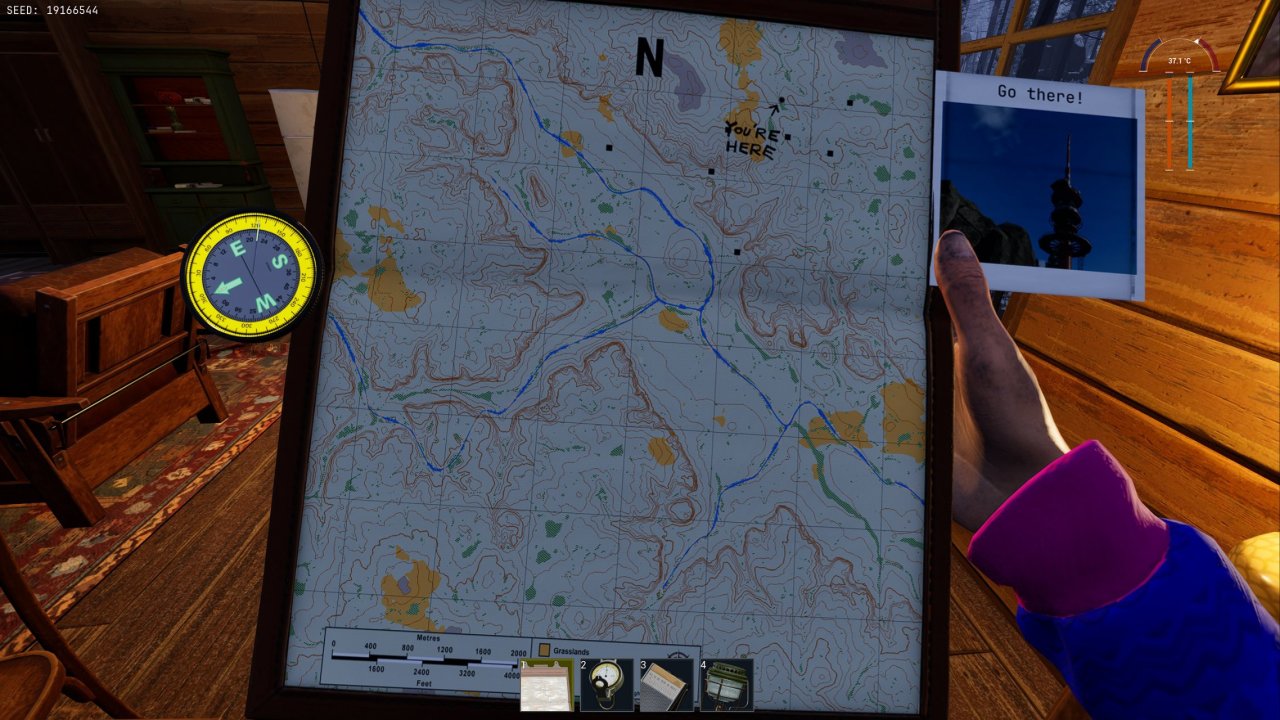 当我开始朝着气象塔处奔跑的时候,在路上又遇见了一个和自己家差不多的破烂小木屋,才知道地图上所标记的黑点是被遗弃的木屋位置,玩家可以在这些木屋内搜寻一些可以使用的工具或是躲雨躲雪等。