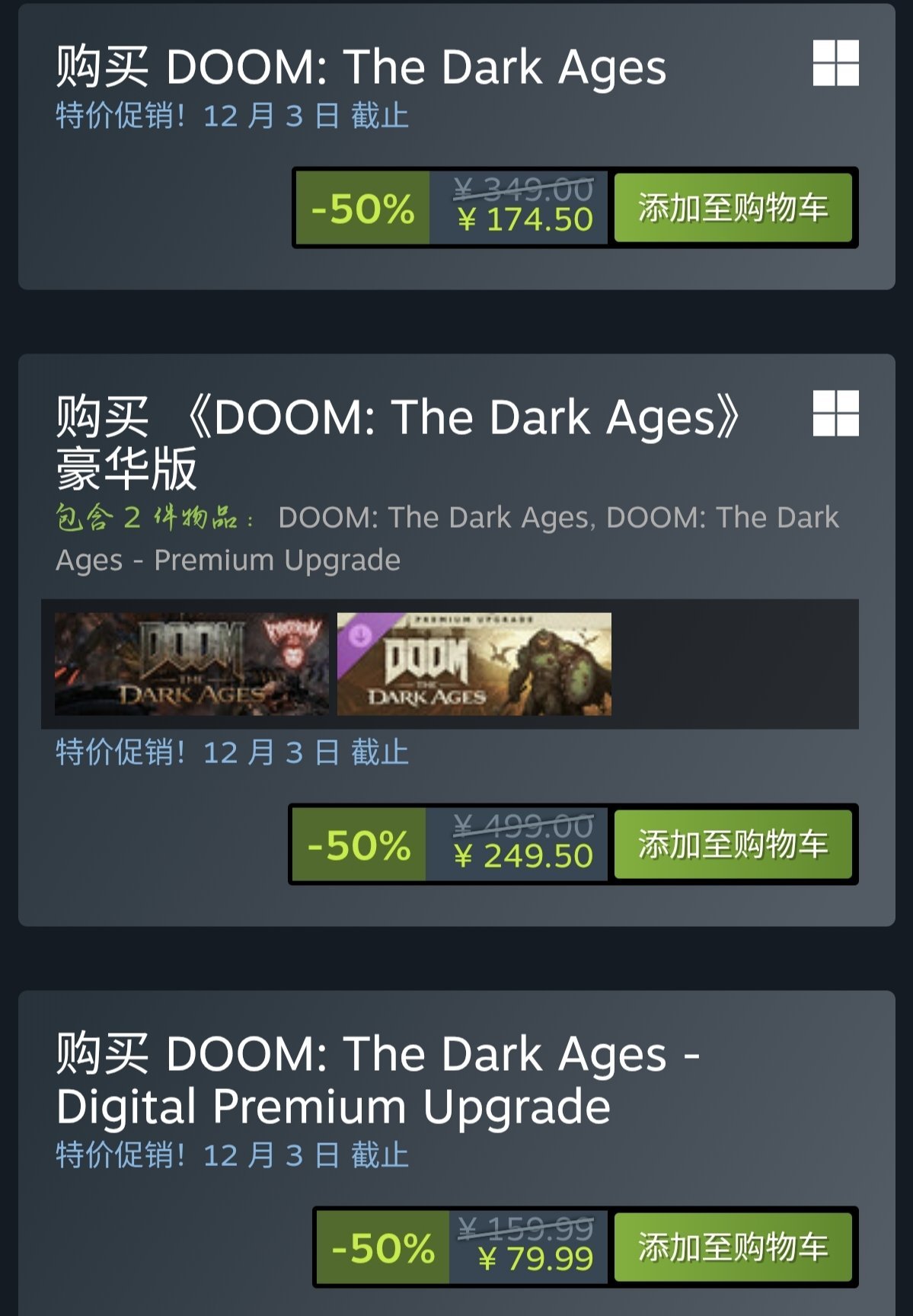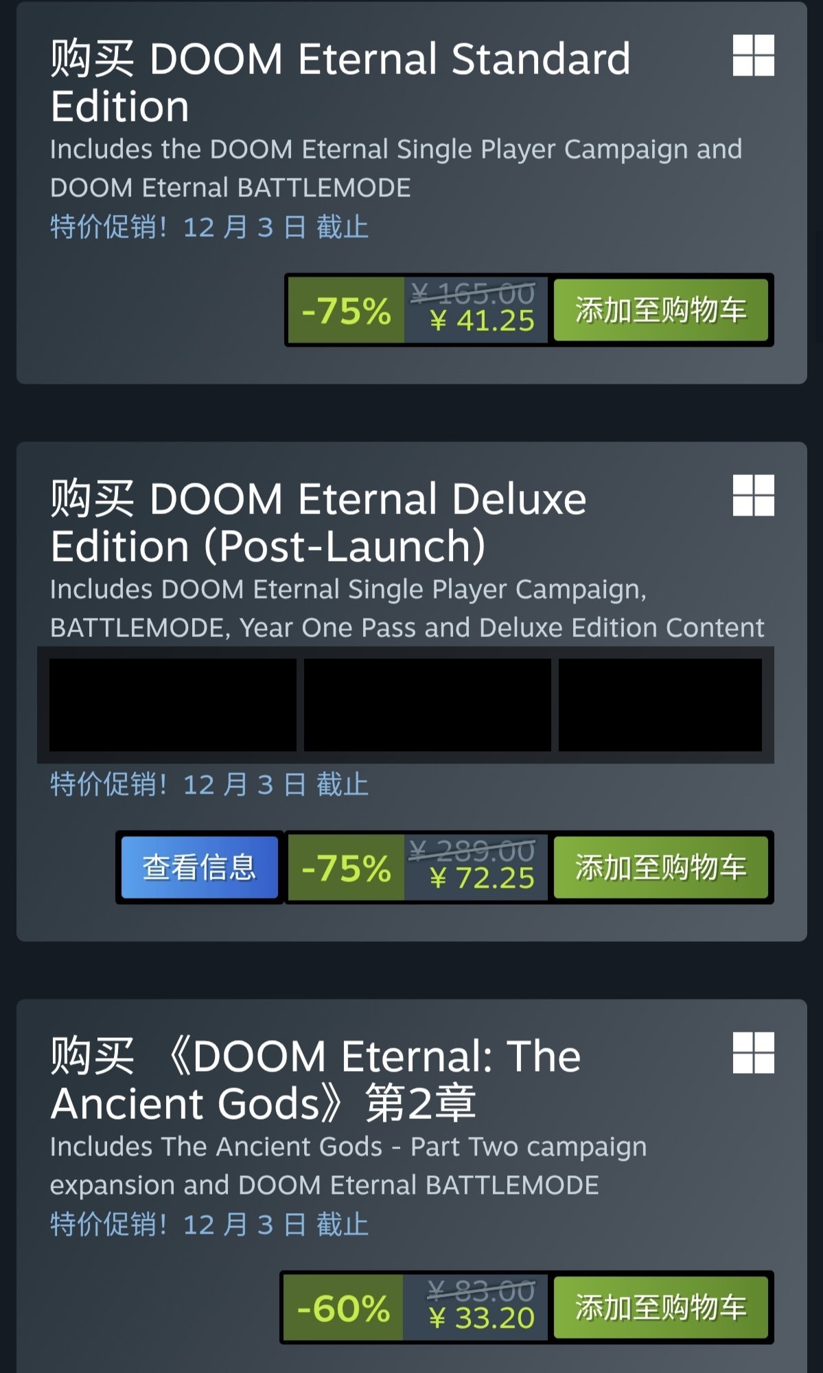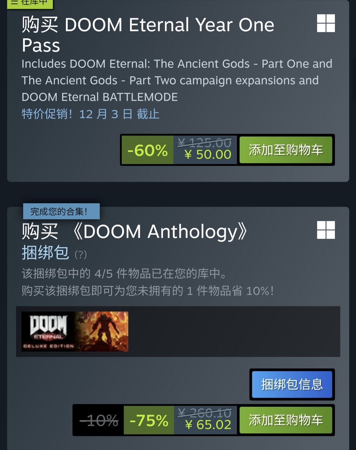 关于购买建议,建议直接购买毁灭战士大包,一步到位,物美价廉。如果只有永恒的本体,想玩dlc,建议直接购买50的季票,单买一个dlc要33。