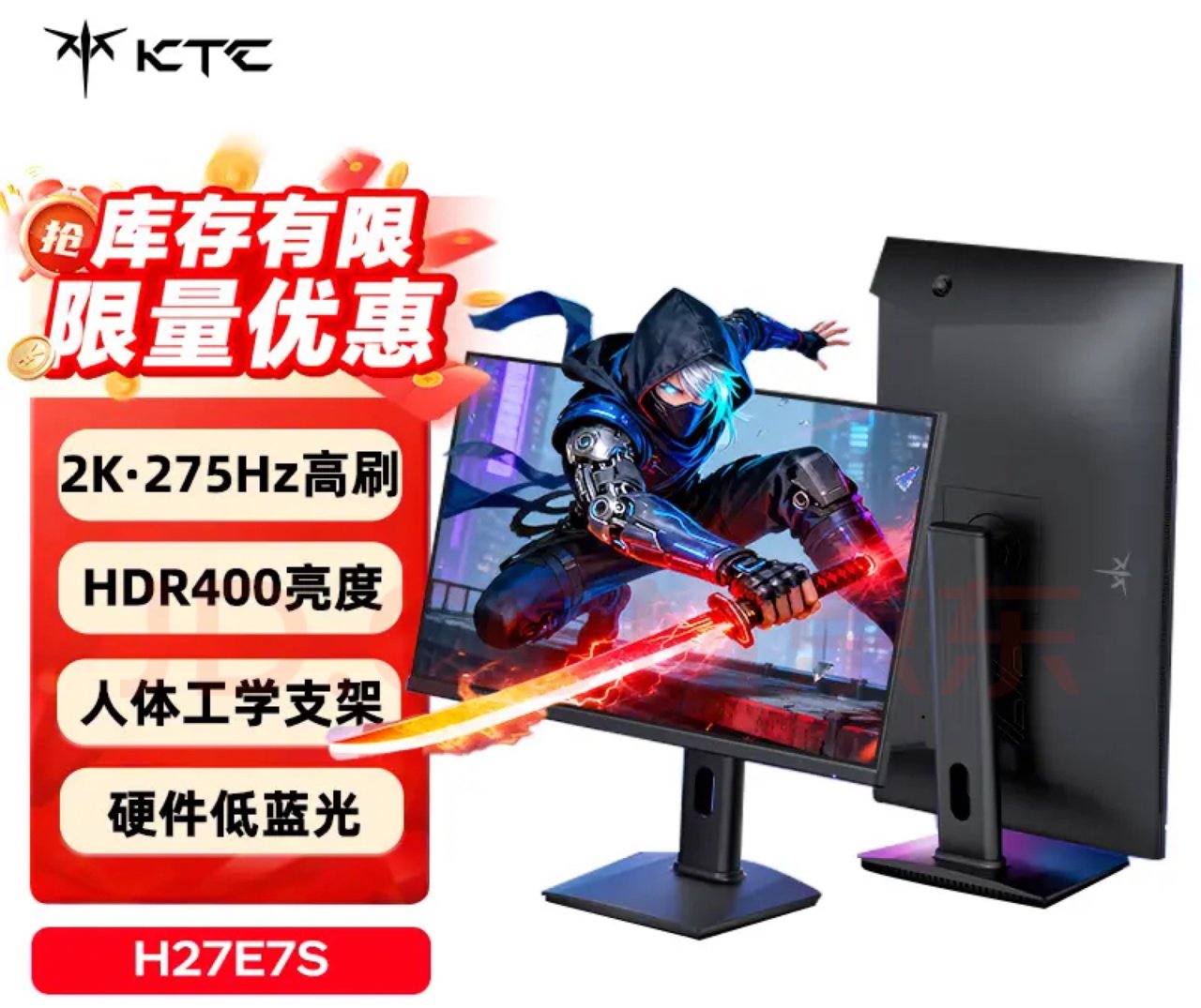 先说他的“数值”,一款2k分辨率,最高支持275Hz刷新率,27寸且支持旋转升降的电竞显示器,官方售价仅849块,但是国补经常在800左右,性价比直接拉满,而且在KTC的调教下,显示器素质优秀,适合千元以内预算的游戏党