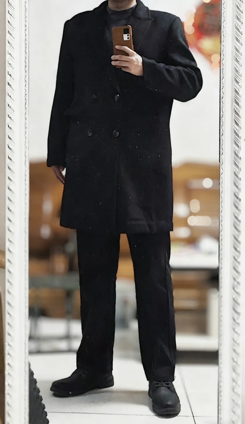 一件羊毛大衣,羊毛含量50左右,垫肩非常夸张,给我搞成双开门大冰箱了,里面加棉非常厚实,特别重,大概四五斤左右,穿着感觉整个人都拽下去了。发过来有些折痕,不过无伤大雅,毕竟30包邮的价钱实在让我跳不出毛病