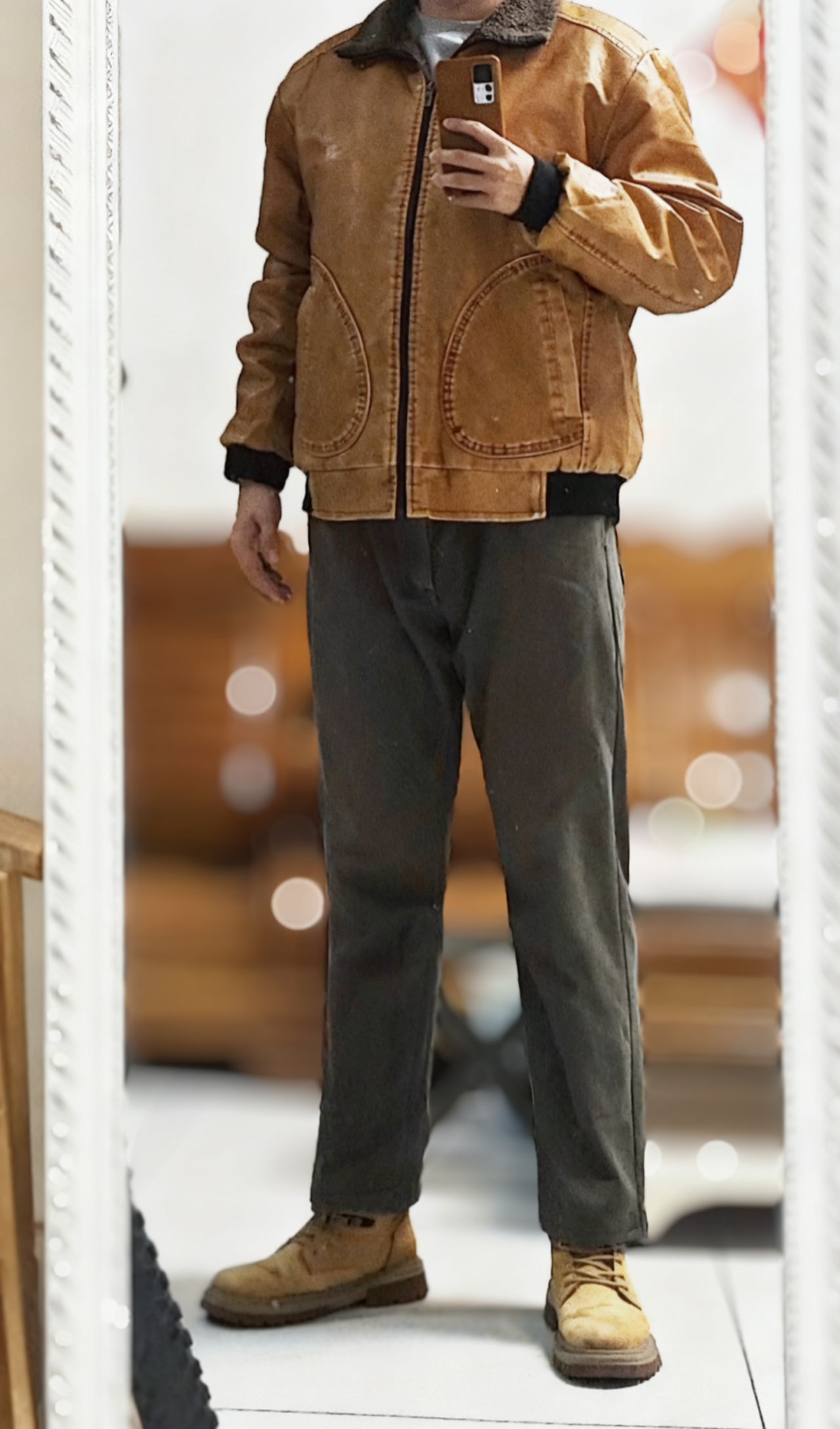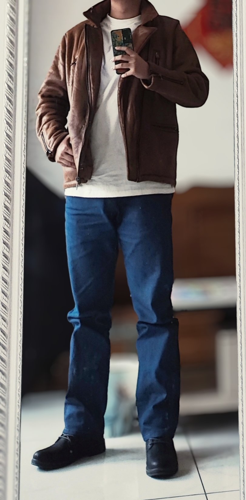 不知名pu皮夹克,没想到质量不错,而且版型也很好看,里面加棉,很暖和。只花了30多元