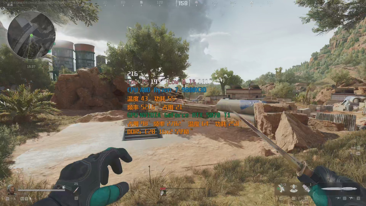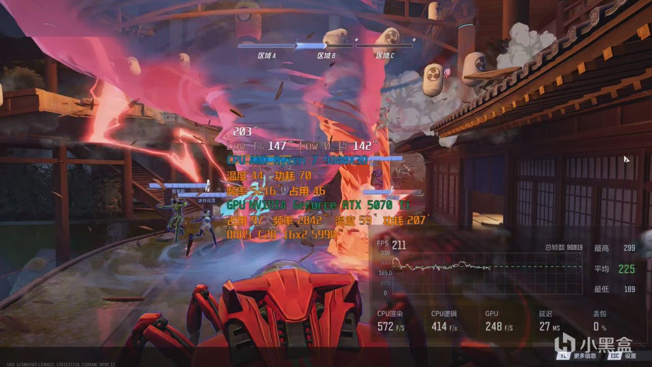 9800X3D对比7800X3D 平均帧高30,Low帧高20左右;对比5700X3D平均帧搞了100多帧,Low帧高了70帧左右,这个提升幅度还是非常大,一前一后玩起来简直是两个游戏。