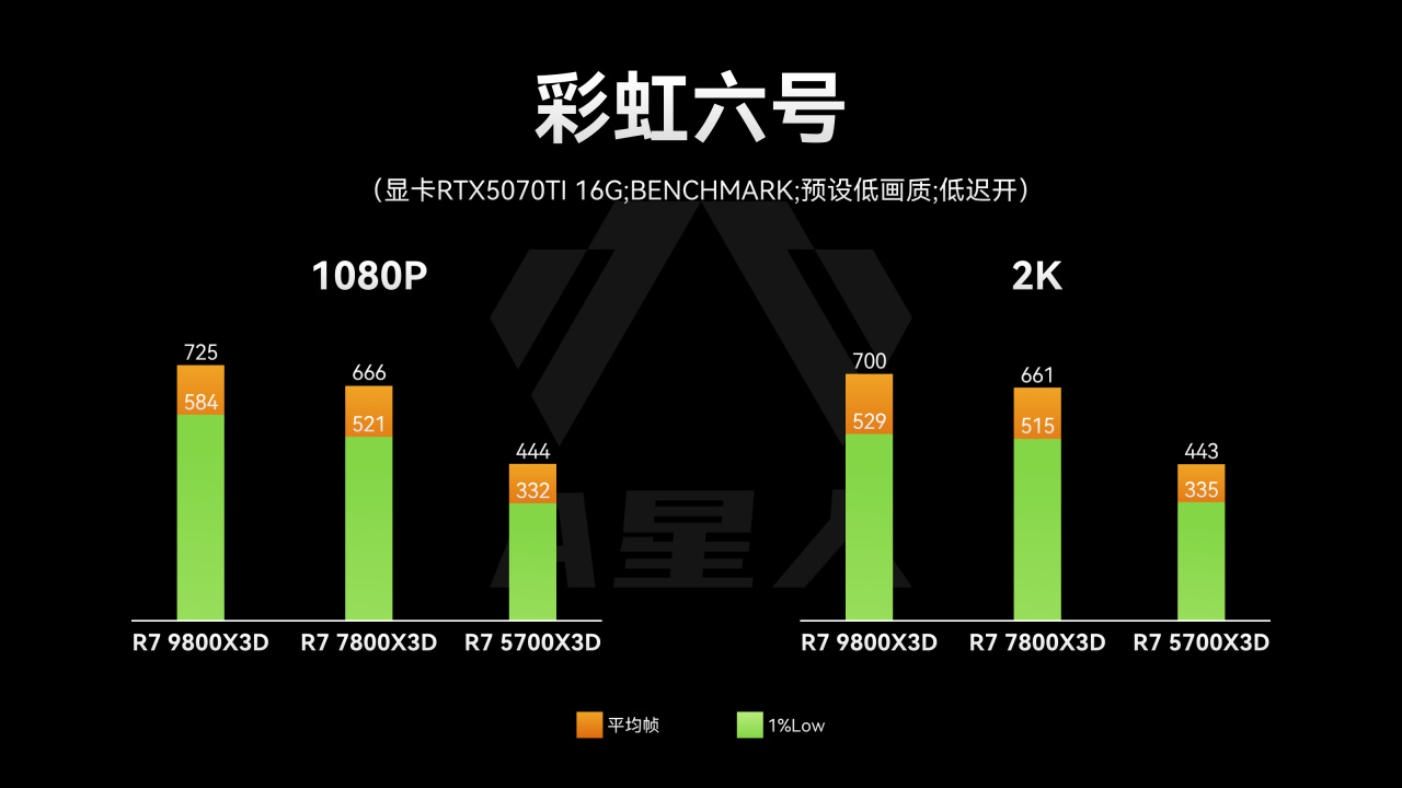 彩虹六号里面,5700X3D的帧率不低 能够跑到440帧,Low帧也能到330帧,但9800X3D能够直接到700帧,没有对比就没有伤害,虽说超过400帧 再多300没有太大的感知,但我打游戏自己看着舒服 你们说是吧。