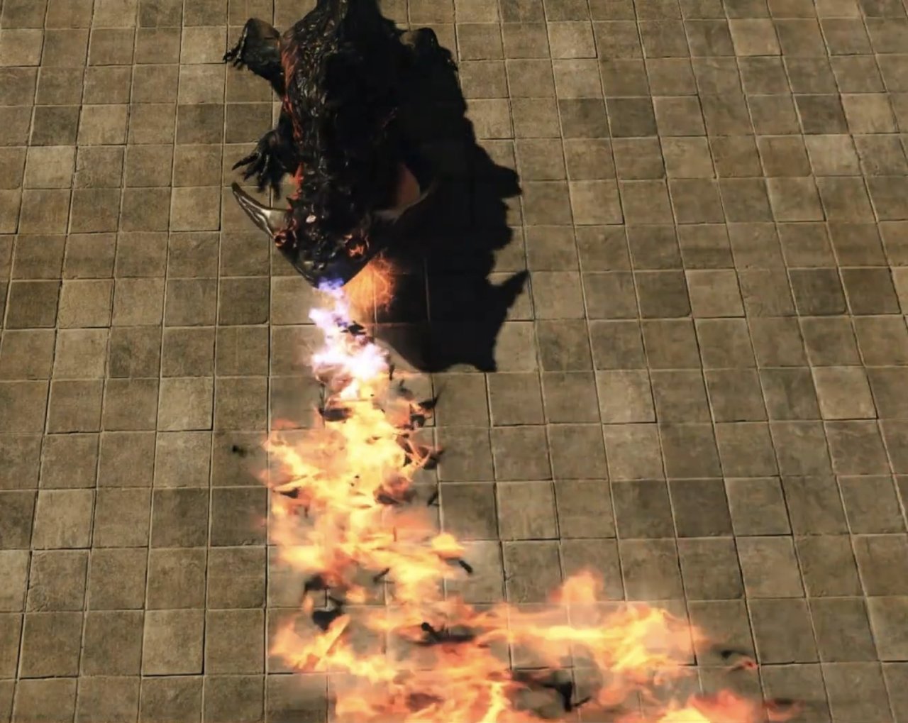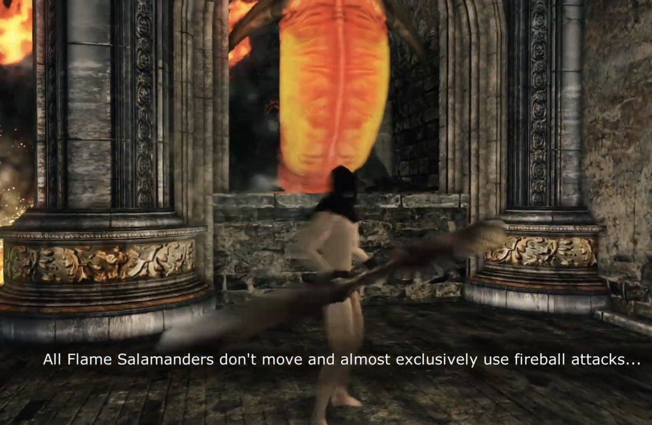 而且他存在感还是挺高的,不管是初见铁甲龟兵(我真忘了那个叫啥了)时左侧山洞中堵住洞内疯狂喷火不让你拿火焰长剑的哪只,还是打最后巨人路过附近时听到其嘶吼咆哮,都能给刚玩魂2的人留下深刻印象。