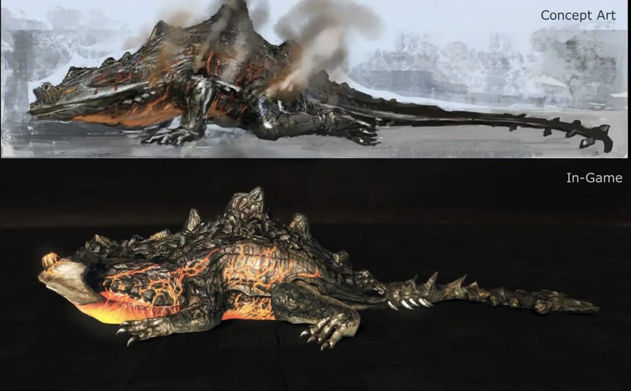 想必各位在玩法环的老魂5都对魂二里这一怪物记忆犹新吧?刚出如蜜不久,还在和游魂薅头发的时期还没过去,就会从好几个位置看到这样一只看起来很强,很像火龙或者蜥蜴的庞然大物。