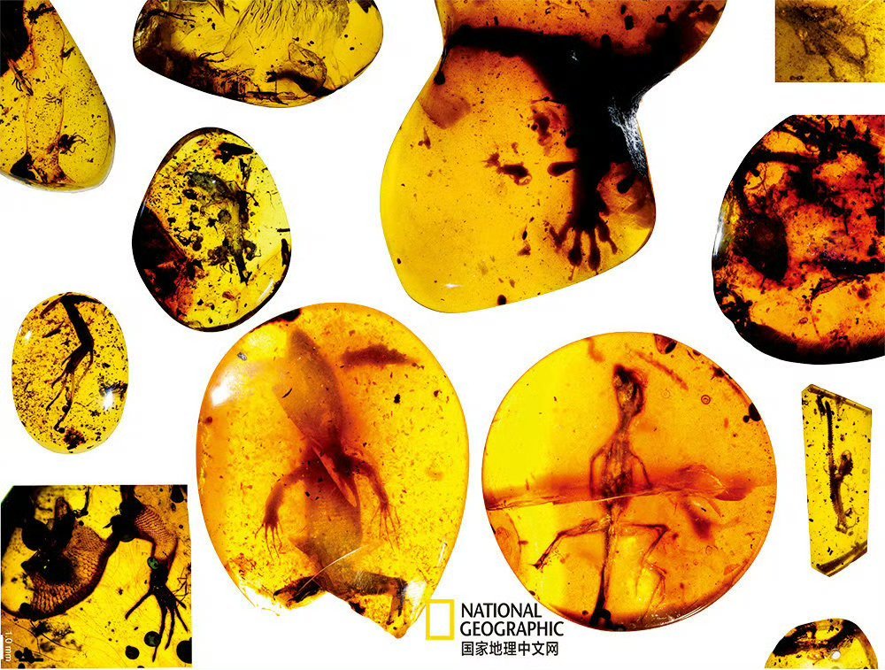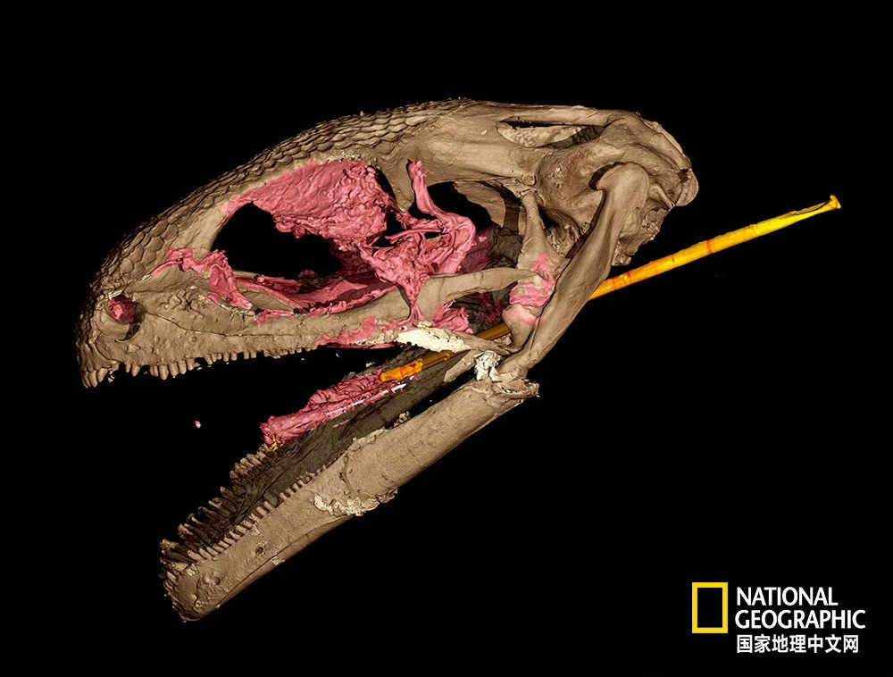 下图是我于国家地理上自行查阅到的阿尔班螈类琥珀及其下颌骨弹射结构复原图。