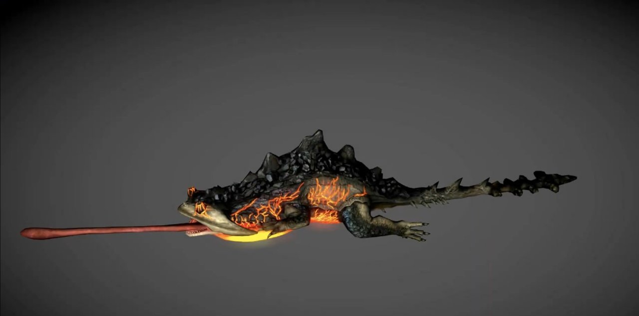 而且火蝾螈还有一个攻击动作模组是像变色龙一样吐出他的大圆舌头,有人可能就觉得是参考了变色龙绝对没错了吧?