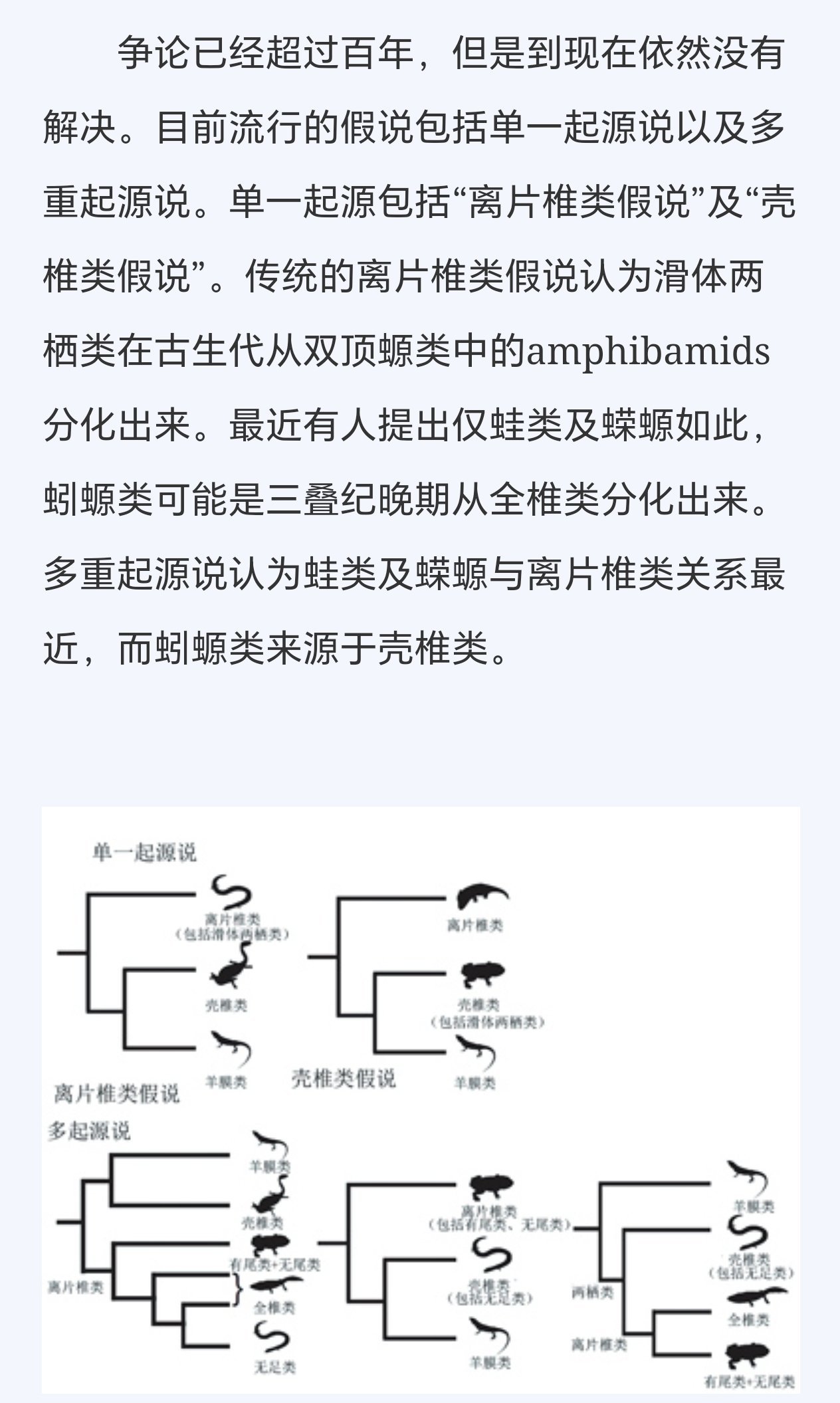 这是因为根据已经灭绝的离片椎类两栖动物与壳椎类两栖动物的化石记录,他们中的大多数成员都是身披鳞片与骨板的中大型物种。