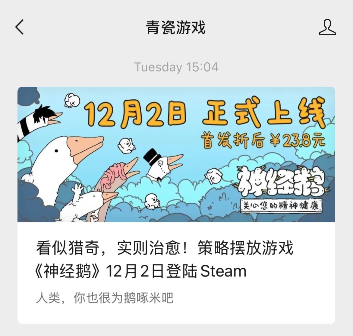 《神經鵝》將於 12 月 2 日(五天後)正式上線。