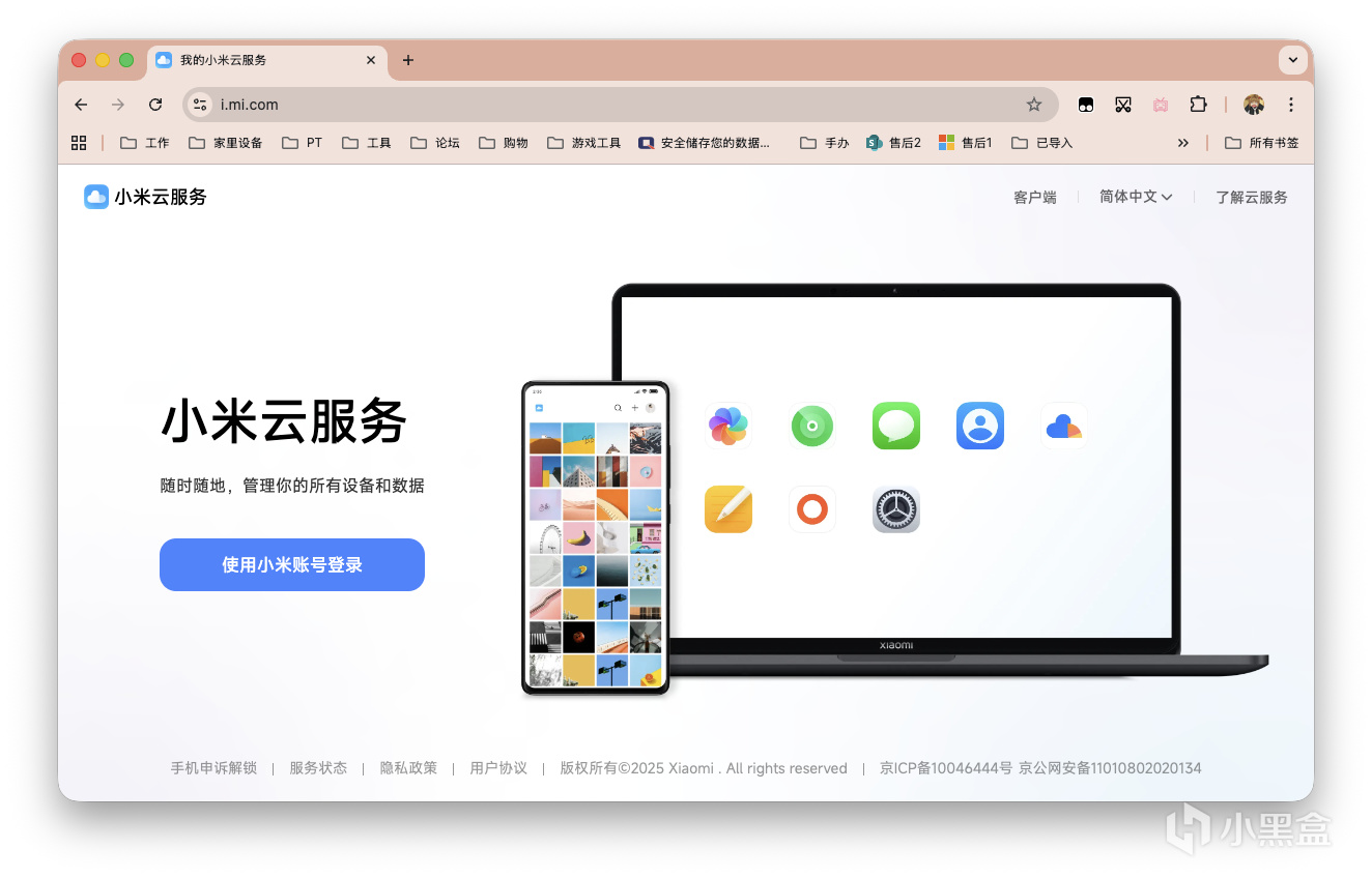 首先需要进入小米云的官网,登录小米账户。