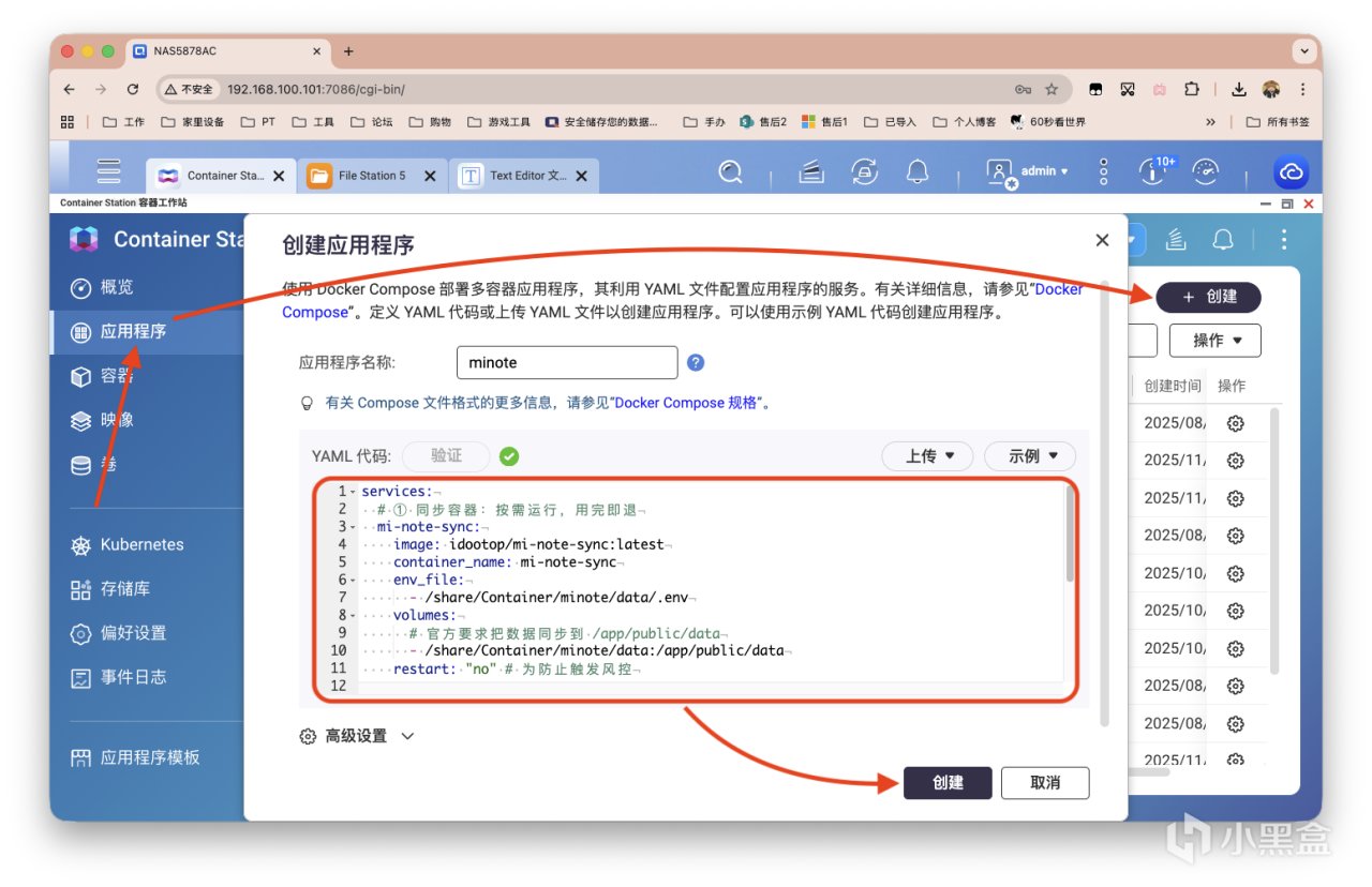 打开威联通的Container Station创建新的应用程序,建议各位根据自身情况修改端口和文件映射目录。