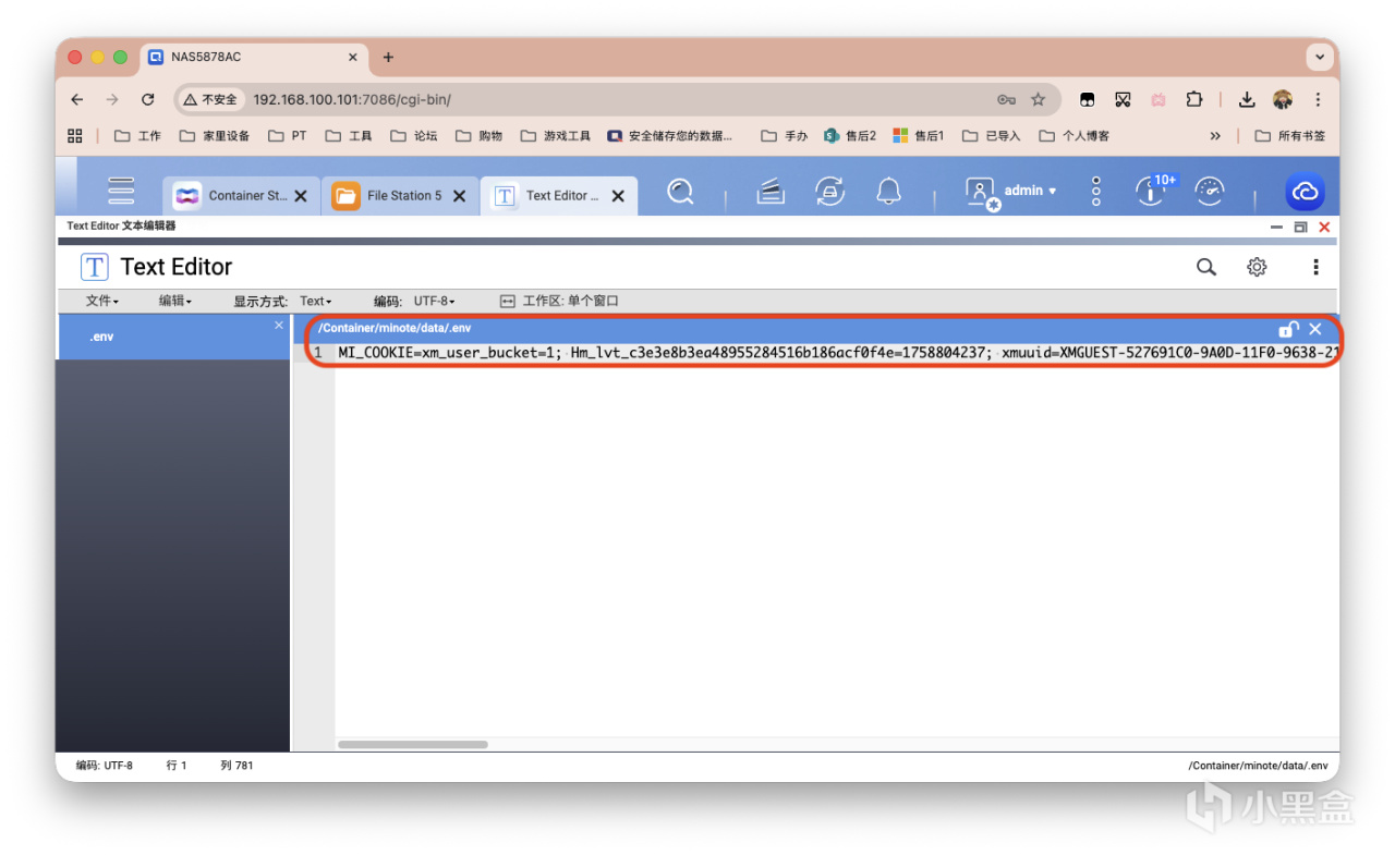 再创建一个.env环境变量文件,上面小米账户的cookie粘贴进去并保存即可。