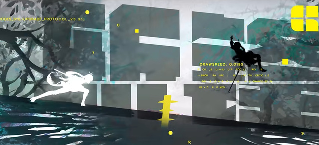 后半段就是千语睡着做梦在江湖快意,和自己梦中的影作战,我懂我懂,武侠小说里都叫斩心魔。这段打戏也算是鹰角在炫技,炫的不是打架,炫的是他的平面设计与“核心科技”。平面设计方面鹰角就没让我失望过,明日方舟的机核风吹到了终末地, “斩锋”“破势”的剪影,好歹让前面傻不拉几的人设收回个七七八八。