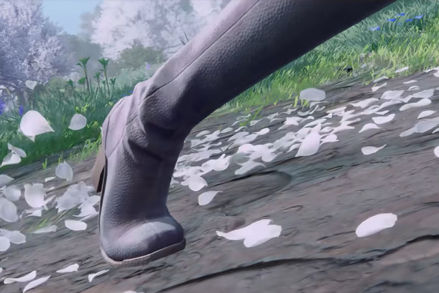 当然,最香的还得是明日方舟的核心科技,小陈靴子这个震撼美味啊,膝盖上的护腿连接着长靴,当千语做出弯腰曲腿预备拔刀的动作时,会把动作的压力全都往下挤,在最灵活的脚脖子处产生褶皱,可以细致的看到本身细致描绘的皮革的纹理在褶皱处随着光线变化也产生了弯折的阴影,尤其是千语前脚掌发力抓地时脚背上方的弯折,可以看出来还带着多次使用产生的形变。而且我一开始就说了,靴子上面被护腿封死,整个靴子密不透风,傻丫头天天练剑到处乱跑运动量又大,再加上鹰角精致的鞋子描写,震撼美味!