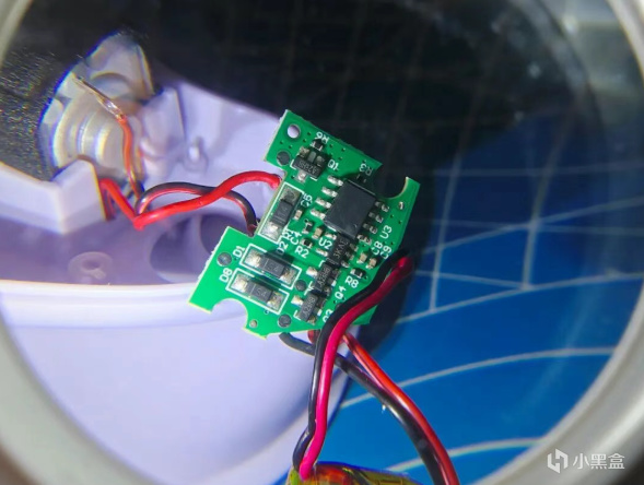 拆开后内部结构一目了然:一个沉甸甸的大电机(难怪动力看着这么足)、一块 240mAh 的软包锂电池,还有一块简洁的电路板。说实话,电池容量感觉有点保守,内部明明还有很多空间,要是能加大容量就更完美了~