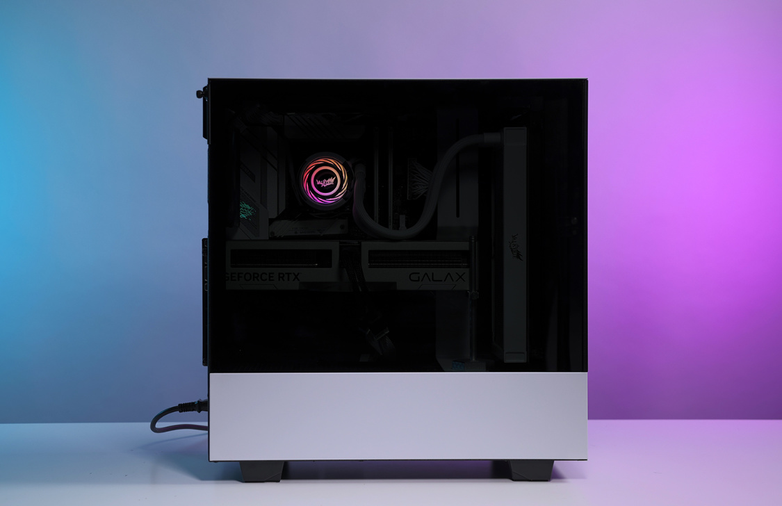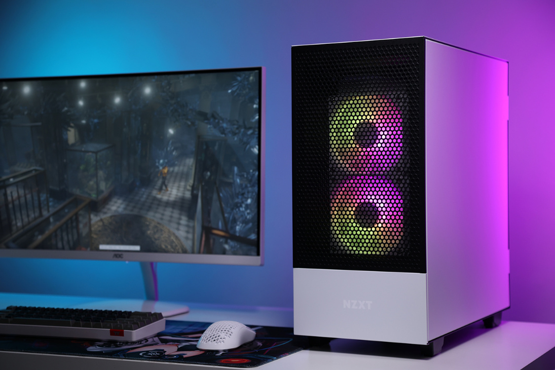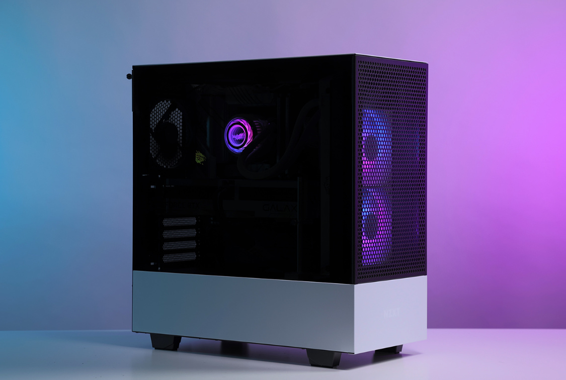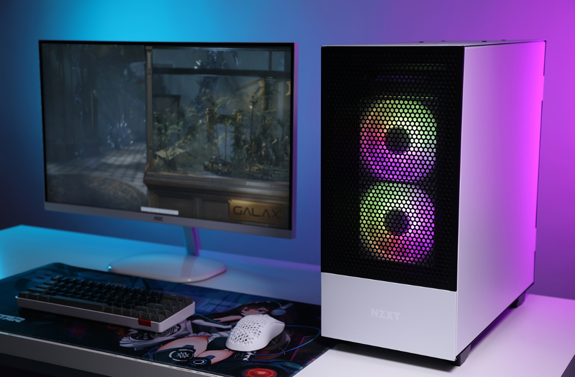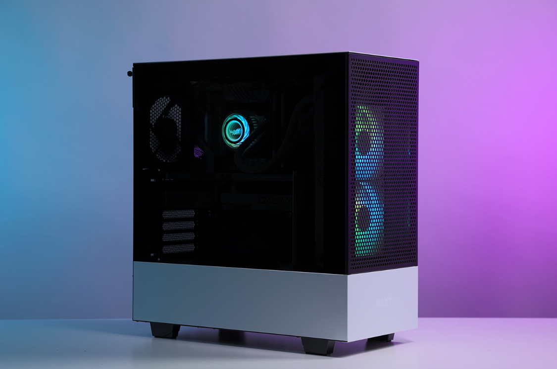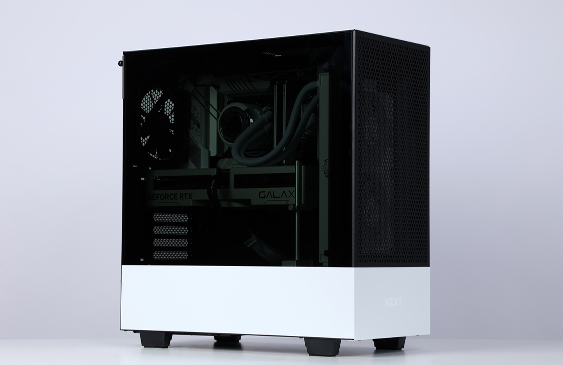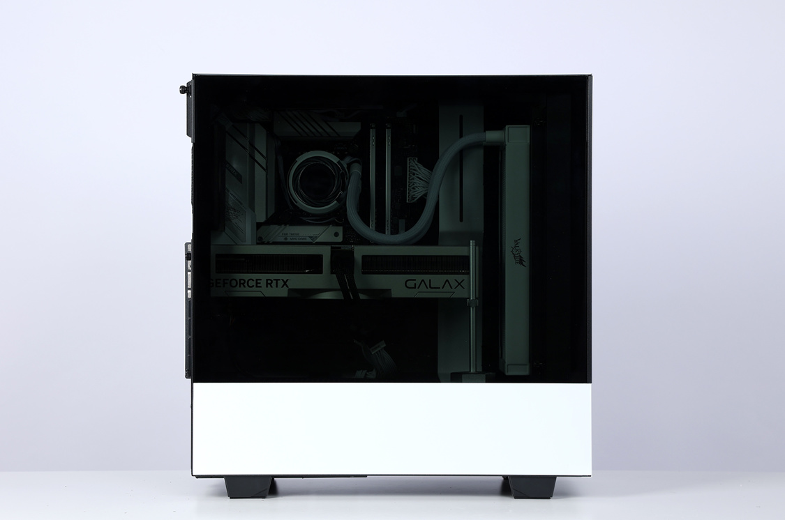 机箱选择的是恩杰H510 Flow白色版,机箱整体设计非常简约,但是黑白撞色的搭配,整体质感非常不错。主流的钢化玻璃侧透面板,采用暗化处理,一定程度上弱化了机箱内部配件ARGB灯效,但颜值依旧在线。