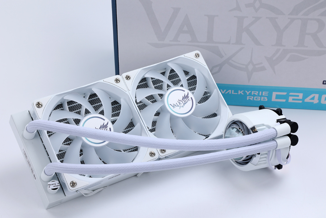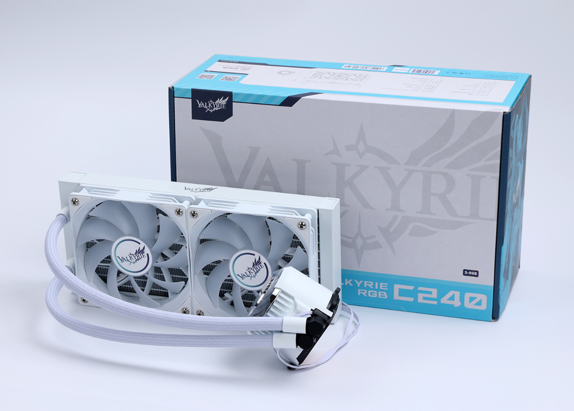 散热方面,睿频拉满的13600KF最高功耗能到180W左右,即便搭配B760主板也不能大意。直接散热界的网红,瓦尔基里(Valkyrie) 极夜 C240W-RGB 一体式水冷安排上。说它是2022年最火的一款散热,应该没多少人会反对。看这包装,就知道,这货是真的懂用户。