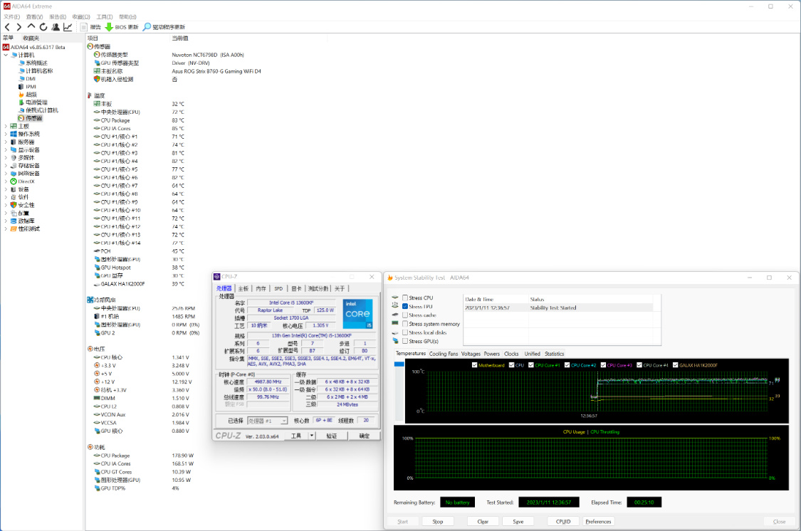 单烤FPU测试,室温26°,机箱内环境,烤机25 Min+,CPU温度72°左右,功耗180W左右;