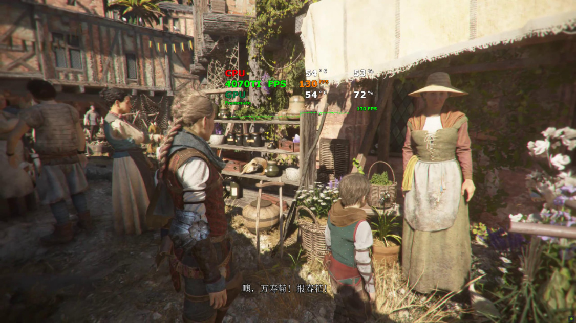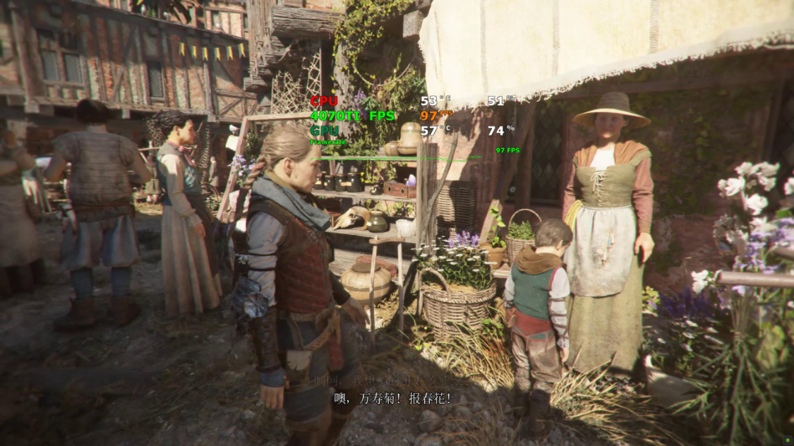 《瘟疫传说·安魂曲》游戏实际帧率测试,4K分辨率下,全极高画质,关闭DLSS时,游戏实际帧率约为90FPS左右。开启DLSS 2.0并将DLSS设为超高性能后,游戏实际帧率约为110FPS左右。继续开启DLSS 3.0后,游戏实际帧率约为165FPS左右;