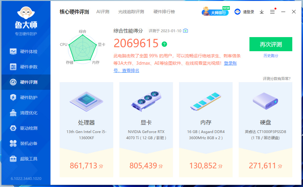 电子产品的更新迭代快早已经是不争的事实(板U显卡三大件价格也都有明显拔高),2023年也早不是那个万元就能上顶配的时侯,相较而言,预算在一万二左右,非丐的情况下,13600KF+RTX4070Ti+32G高频内存的配置组合已经称得上真正性价比了,而且整体配置也还算均衡,不过内存个人其实更倾向选择更大容量的。至于要不要上DDR5内存平台,那就看个人选择了(真要上,也建议选择6400MHz以上的,不然其实意义不大)。