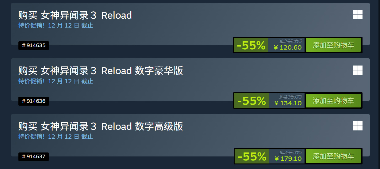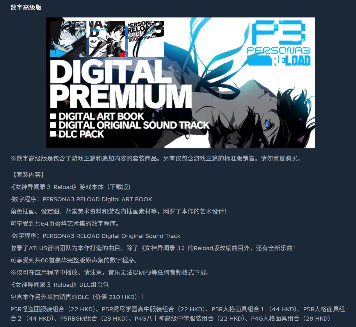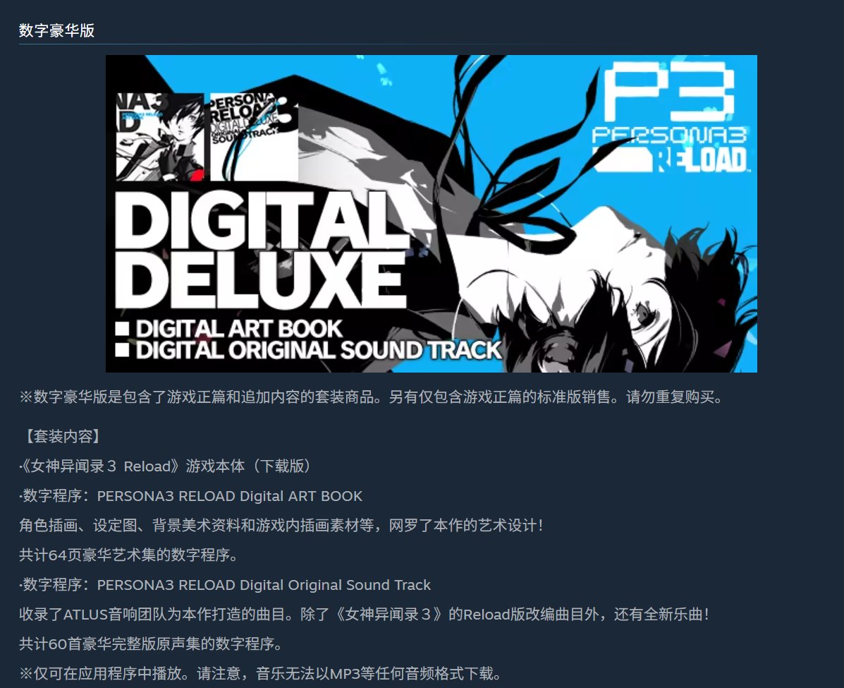 《女神异闻录3:Reload》永降后迎来 4.5 折史低价,标准版售价¥120.6(非新史低,史低是¥119.2)。
