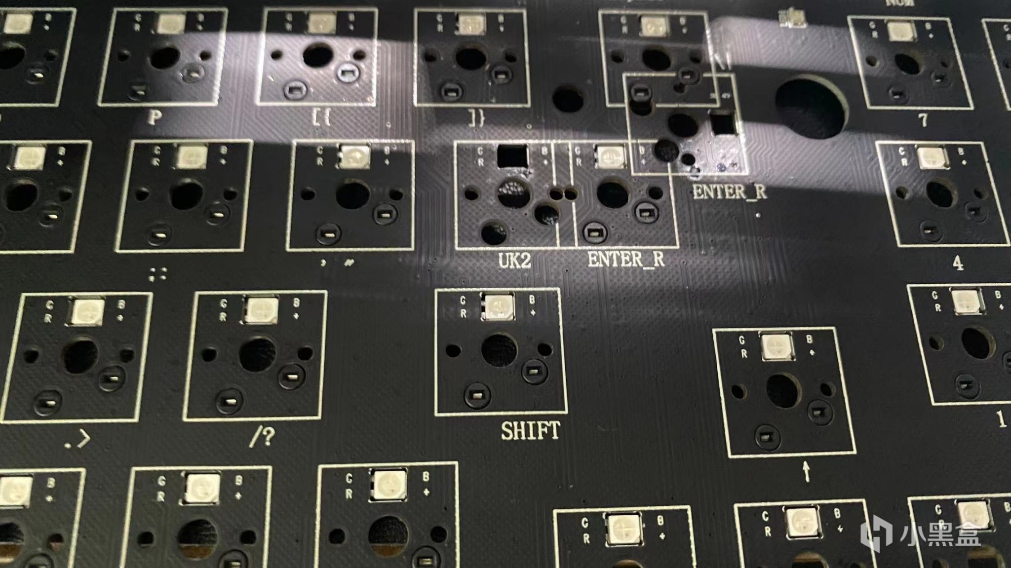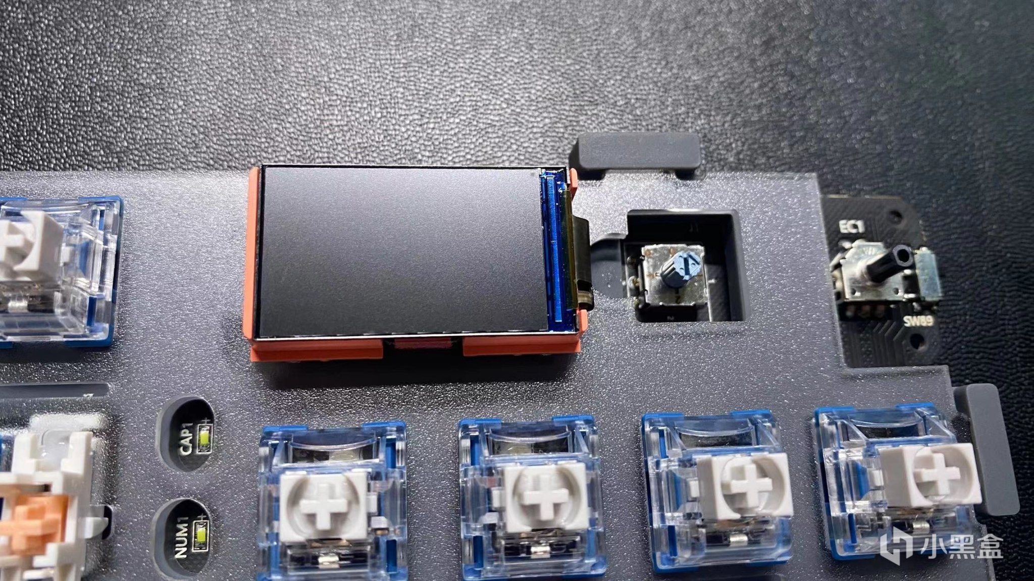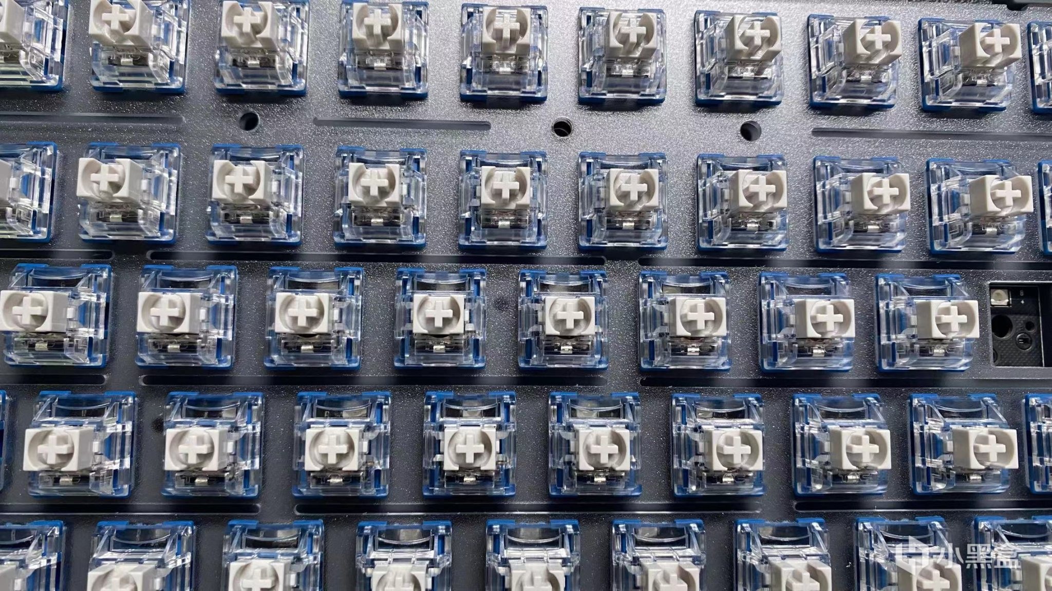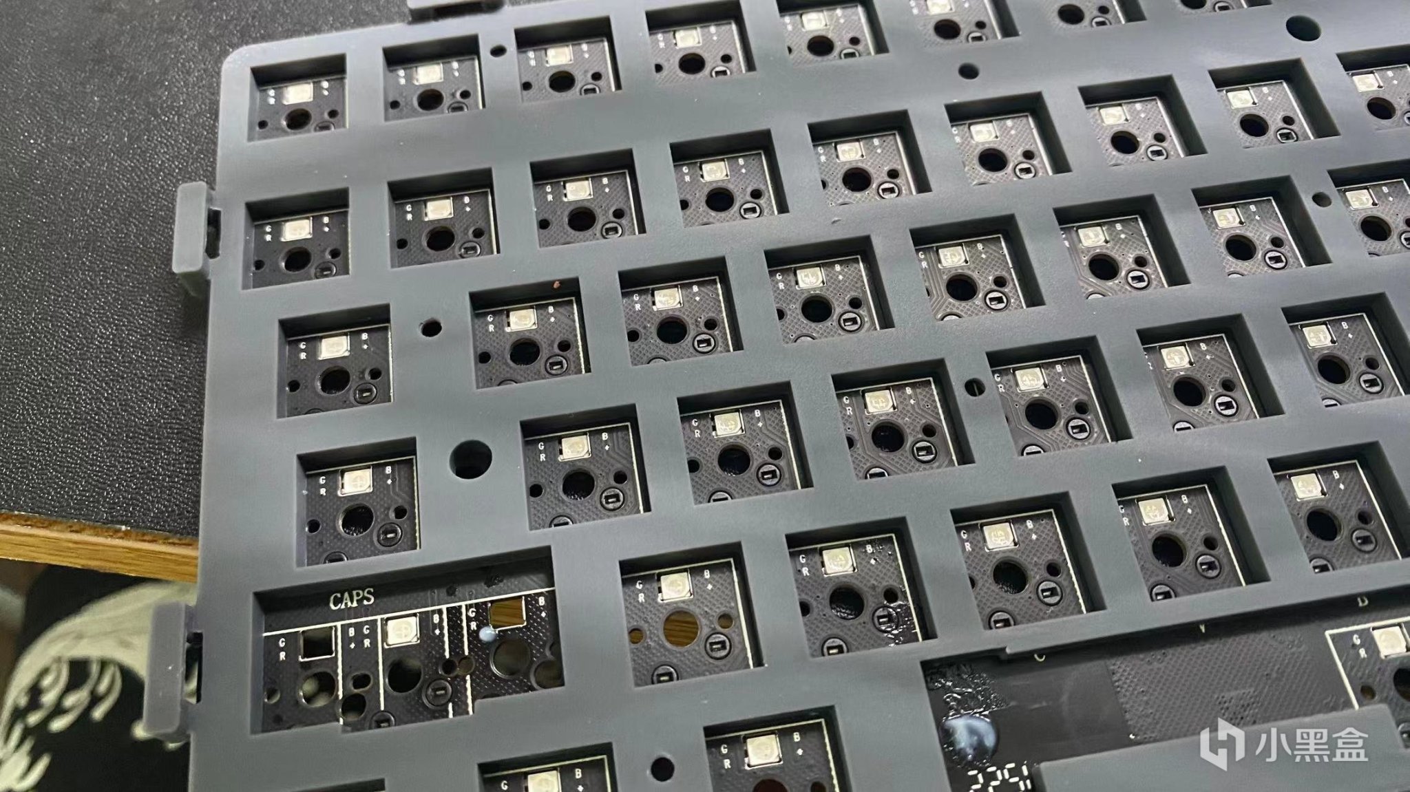 从这里也能看出来,这把键盘采用的是一个上灯位的设计,以及这把键盘没有添加轴下垫,这个是有点小缺点的。