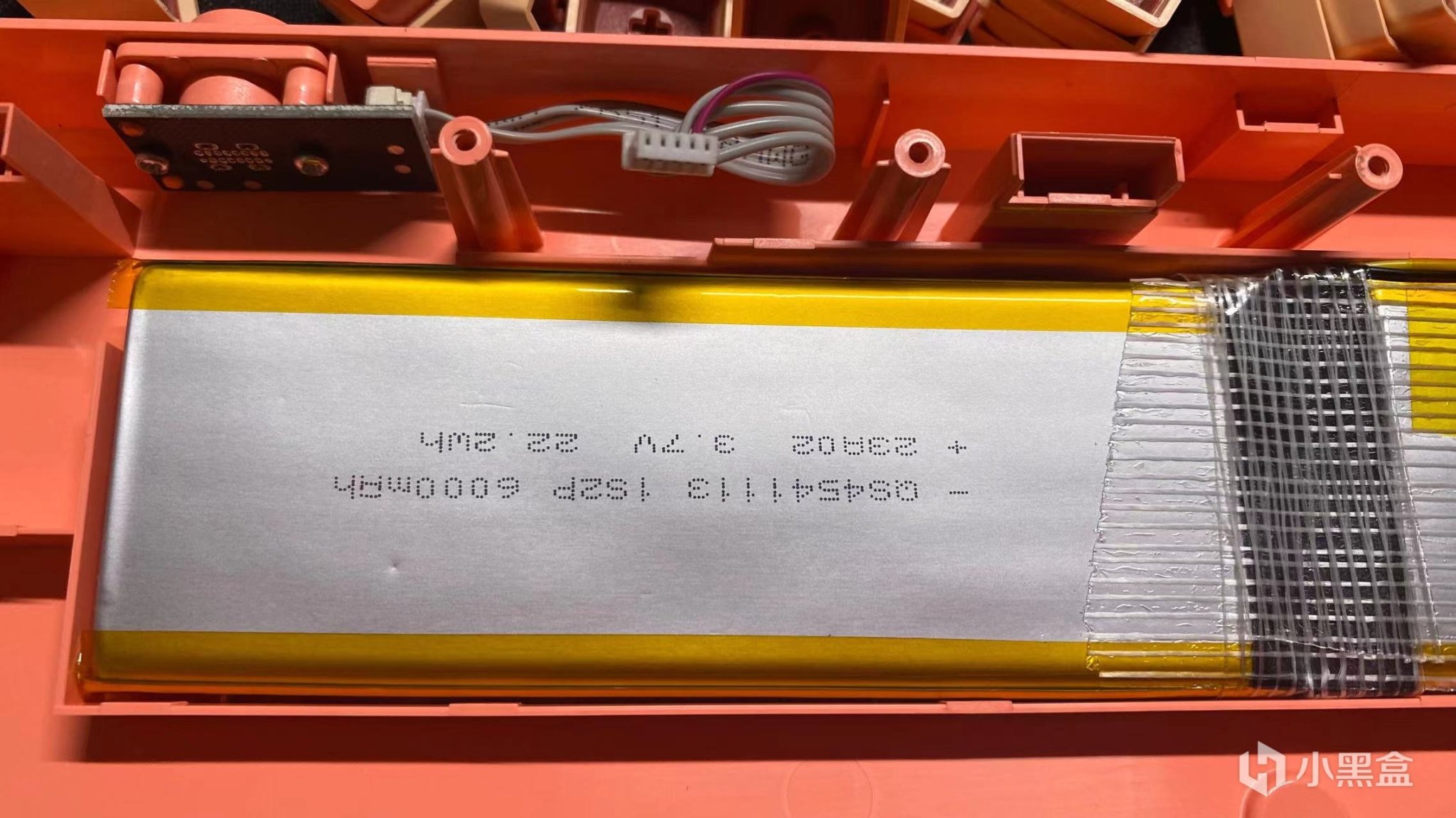 夹心棉方面,键盘采用的是一个硅胶夹心棉的,软硬程度还好吧,在一定程度上是可以抑制空腔音的产生。