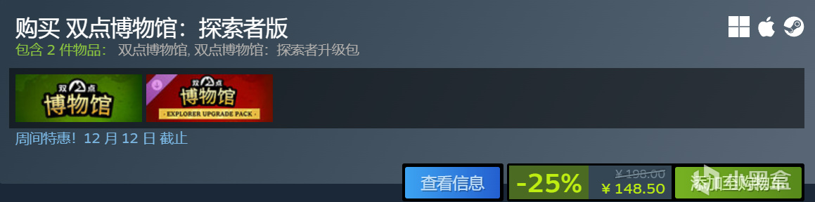 同时,《双点博物馆》的两款?DLC也迎来了折扣,可以关注一下