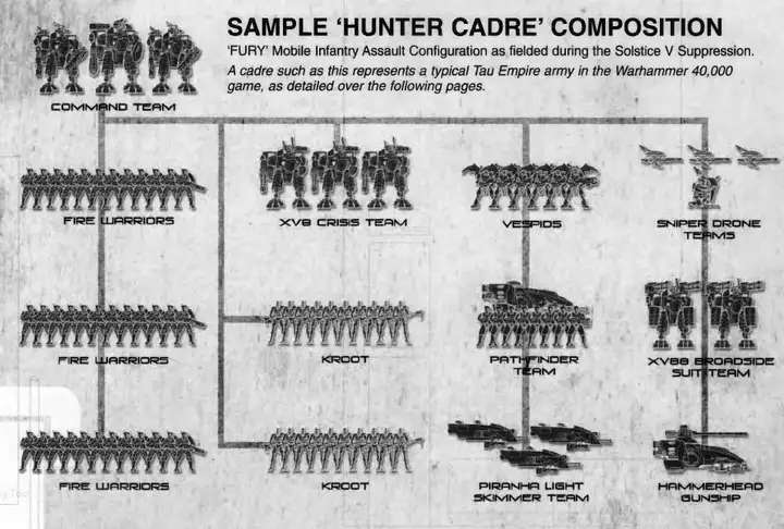 鈦族存在多種類型的基覈編制,但目前最普遍的是多功能獵核。這是由鈦族指揮官統率的合成作戰羣,可同時部署火戰士步兵、輔助軍、戰鬥服與反重力炮艇。多數基核爲常備建制,但其具體結構會根據指揮官的戰略戰術需求存在一定變動。