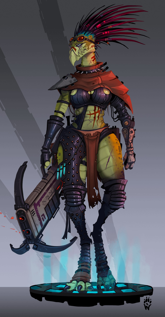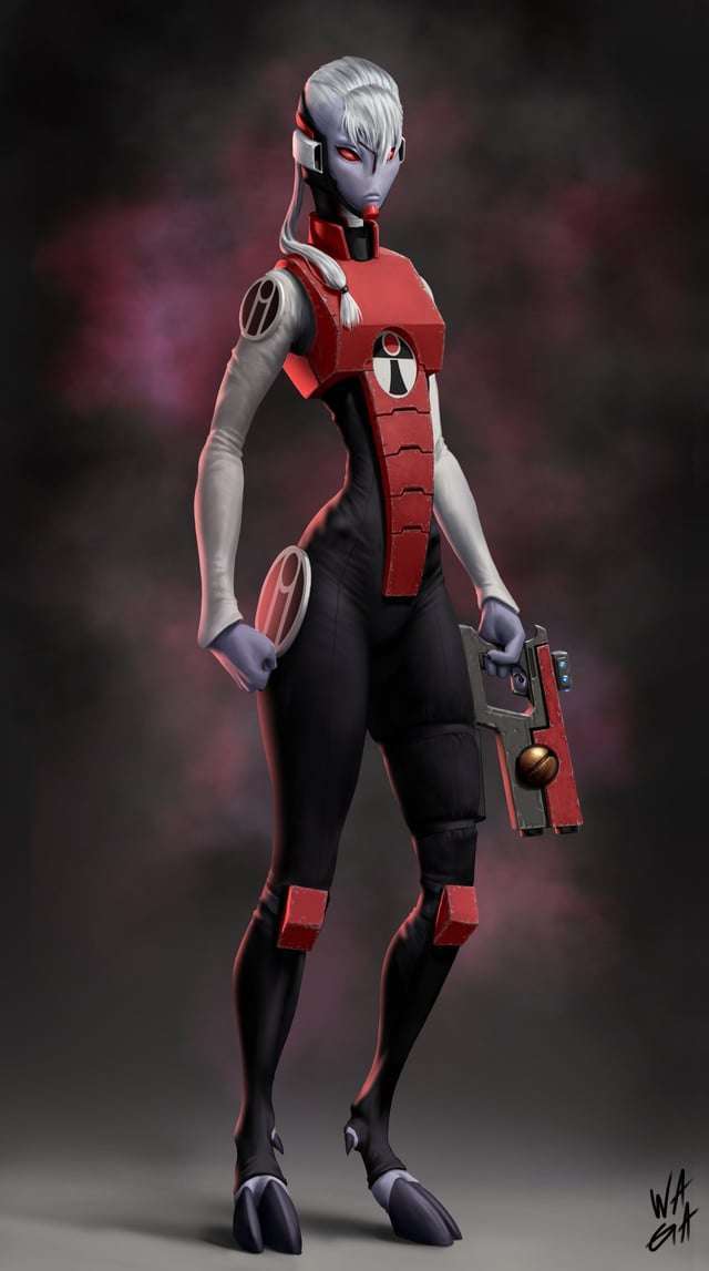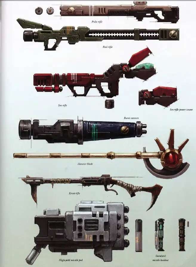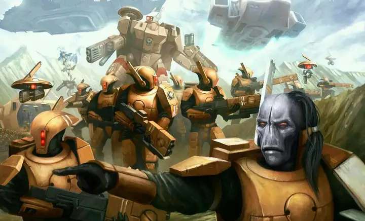火氏族(Shas)——鈦帝國地面部隊主力主要由火氏族構成,因而是帝國最常接觸的鈦族羣體(也許帝國老跟鈦帝國幹仗的原因...)。其平均身高與人類相仿或稍矮,在種族內算得上肌肉發達,這源於該種姓發源於鈦星平原的武士傳統。源自瓦奧'拉世界的火氏族因當地重力較強,往往比同族擁有更發達的肌肉組織。